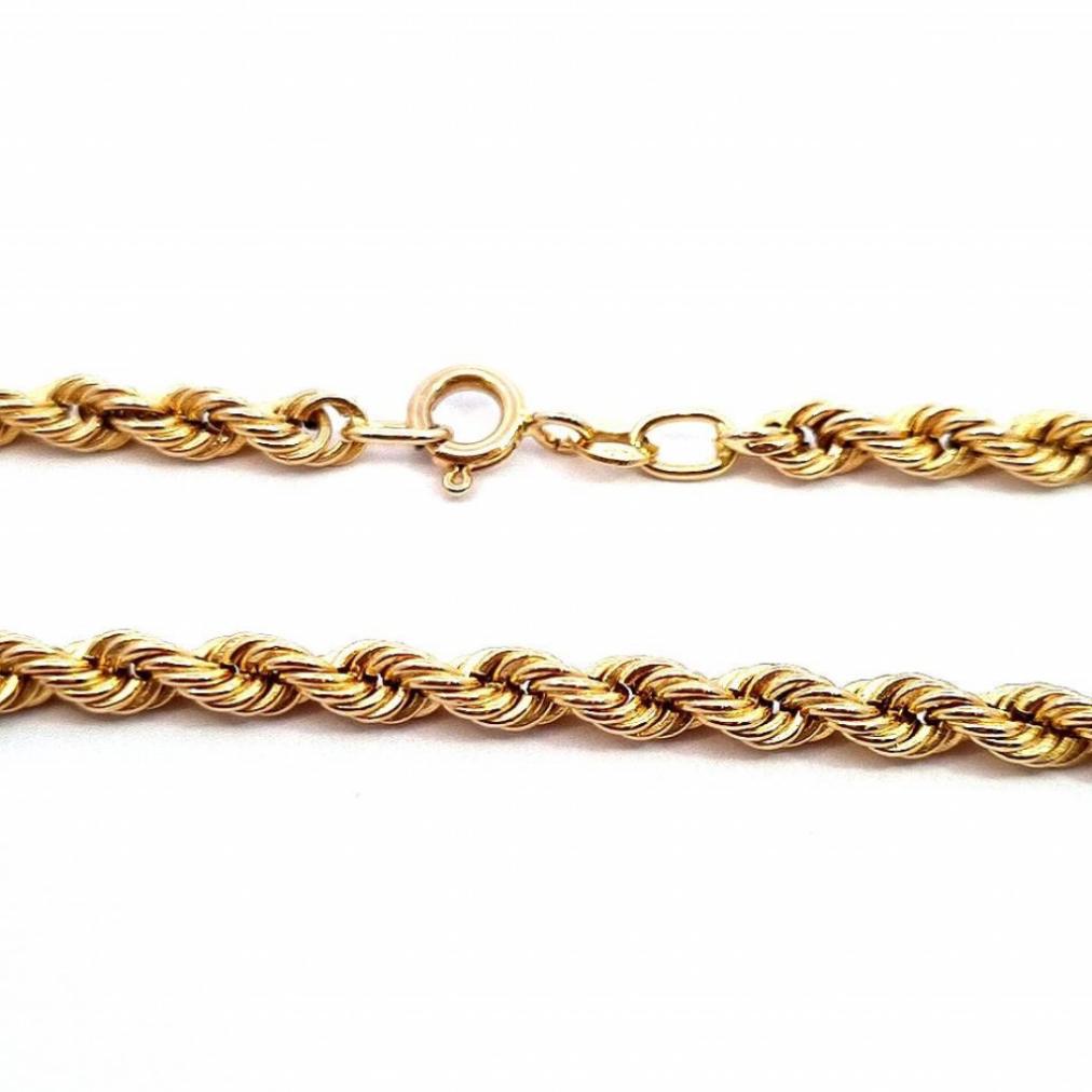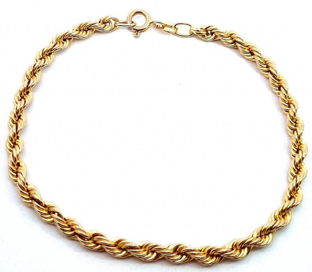Zlatý náramek o ryzosti 585/1000, punc labuť. Váha 2,95 g, délka 19 cm, v nejširším bodě 4 mm.