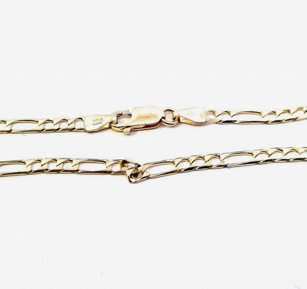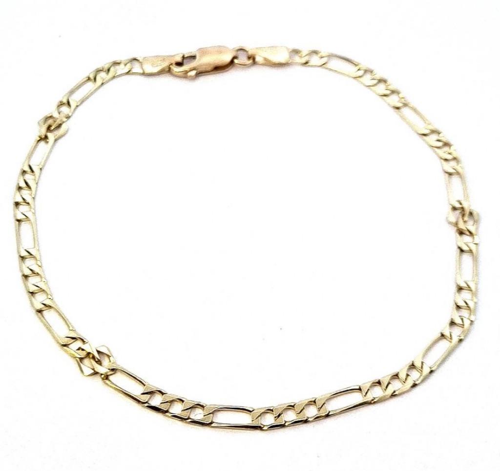 Zlatý náramek o ryzosti 585/1000, punc labuť. Váha 4,16 g, délka 22,5 cm, šířka 3 mm.
