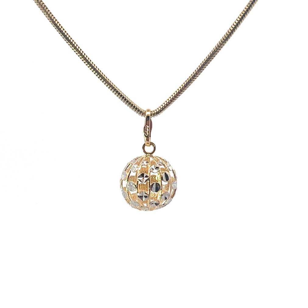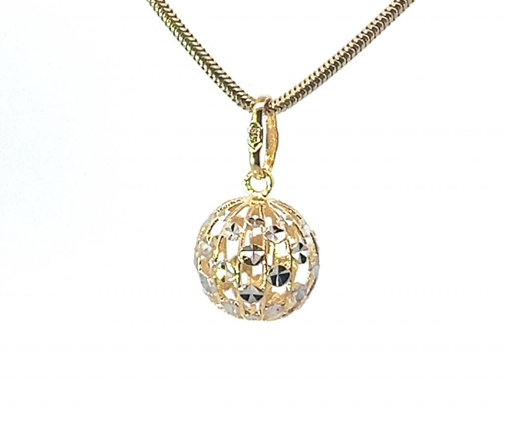 Přívěs z kombinace žlutého a bílého zlata o ryzosti 585/1000, punc labuť. Váha 0,97 g, výška včetně očka 20 mm, průměr ozdoby 11,5 mm. Řetízek není součástí přívěsu.