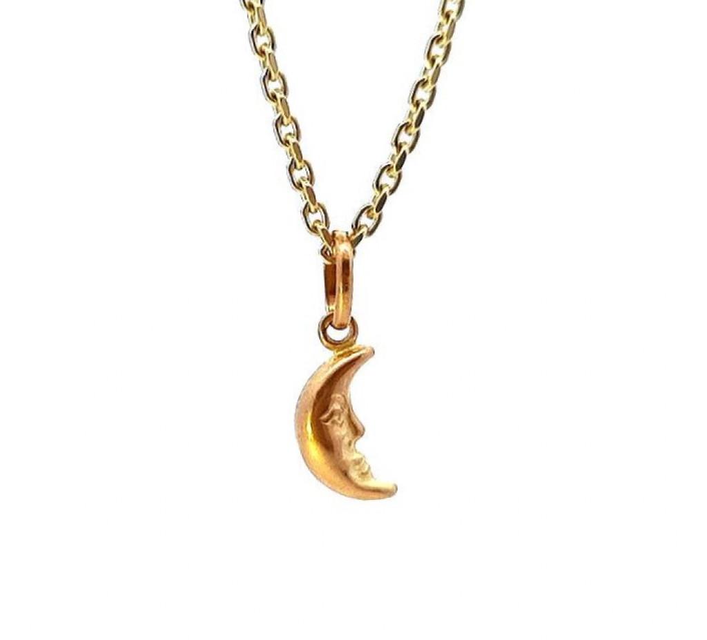 Zlatý přívěs o ryzosti 585/1000, punc labuť. Váha 0,45 g, výška včetně očka 16,5 mm, v nejširším bodě 5,5 mm.