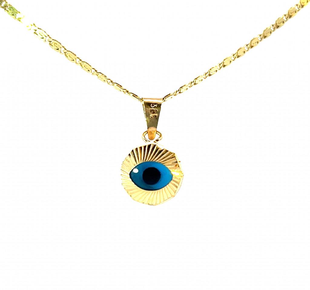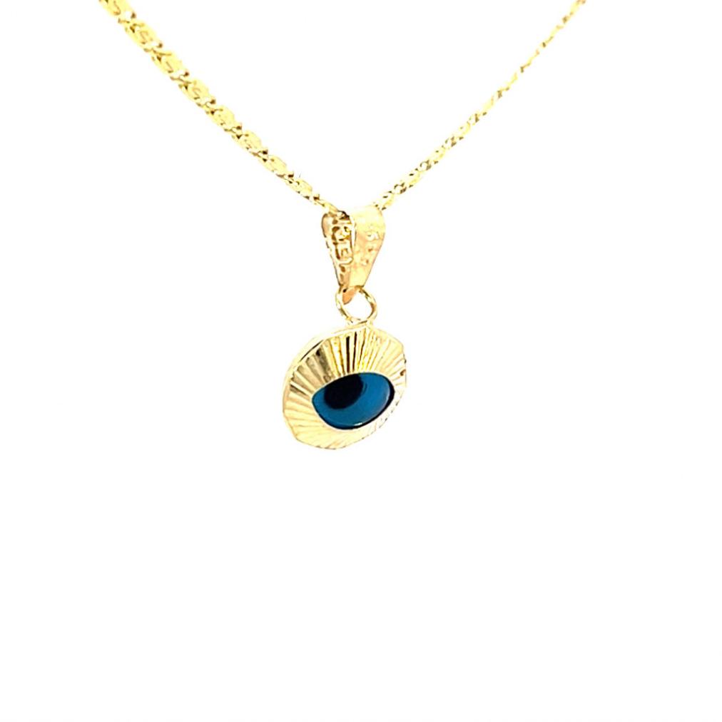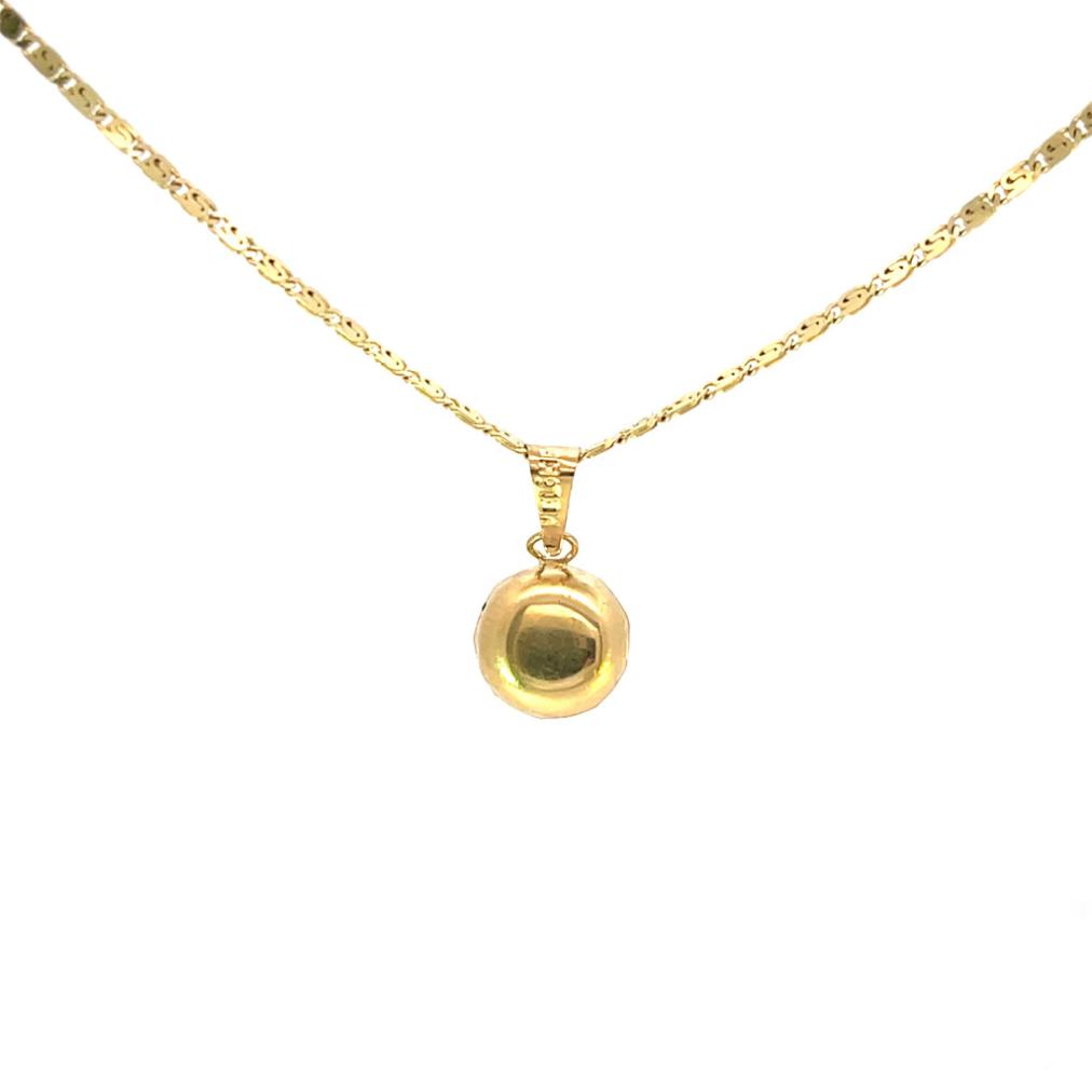 Zlatý přívěs o ryzosti 585/1000, punc labuť. Váha 0,55 g, výška včetně očka 16 mm, průměr 9 mm.