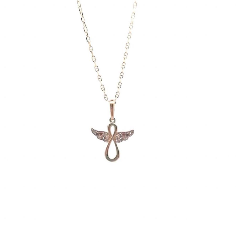 Zlatý přívěs o ryzosti 585/1000, punc labuť. Váha 0,72 g, výška včetně očka 20 mm, v nejširším bodě 14 mm. Kameny jsou syntetické.