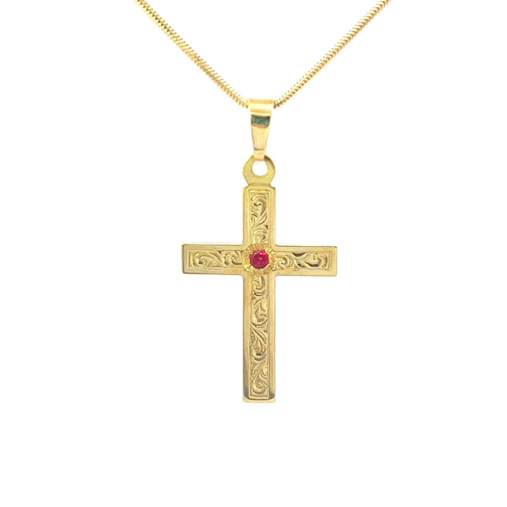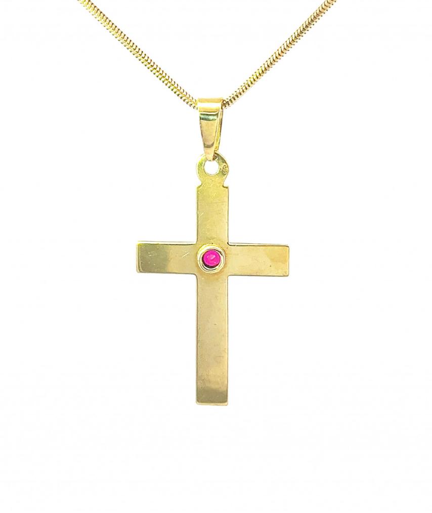 Zlatý přívěs o ryzosti 585/1000, punc labuť. Váha 2,70 g, výška včetně očka 46 mm, v nejširším bodě 23 mm, průměr kamene 3 mm. Kámen je syntetický. Řetízek není součástí přívěsu.