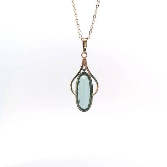 Zlatý přívěs se zeleným kamenem a zirkonem