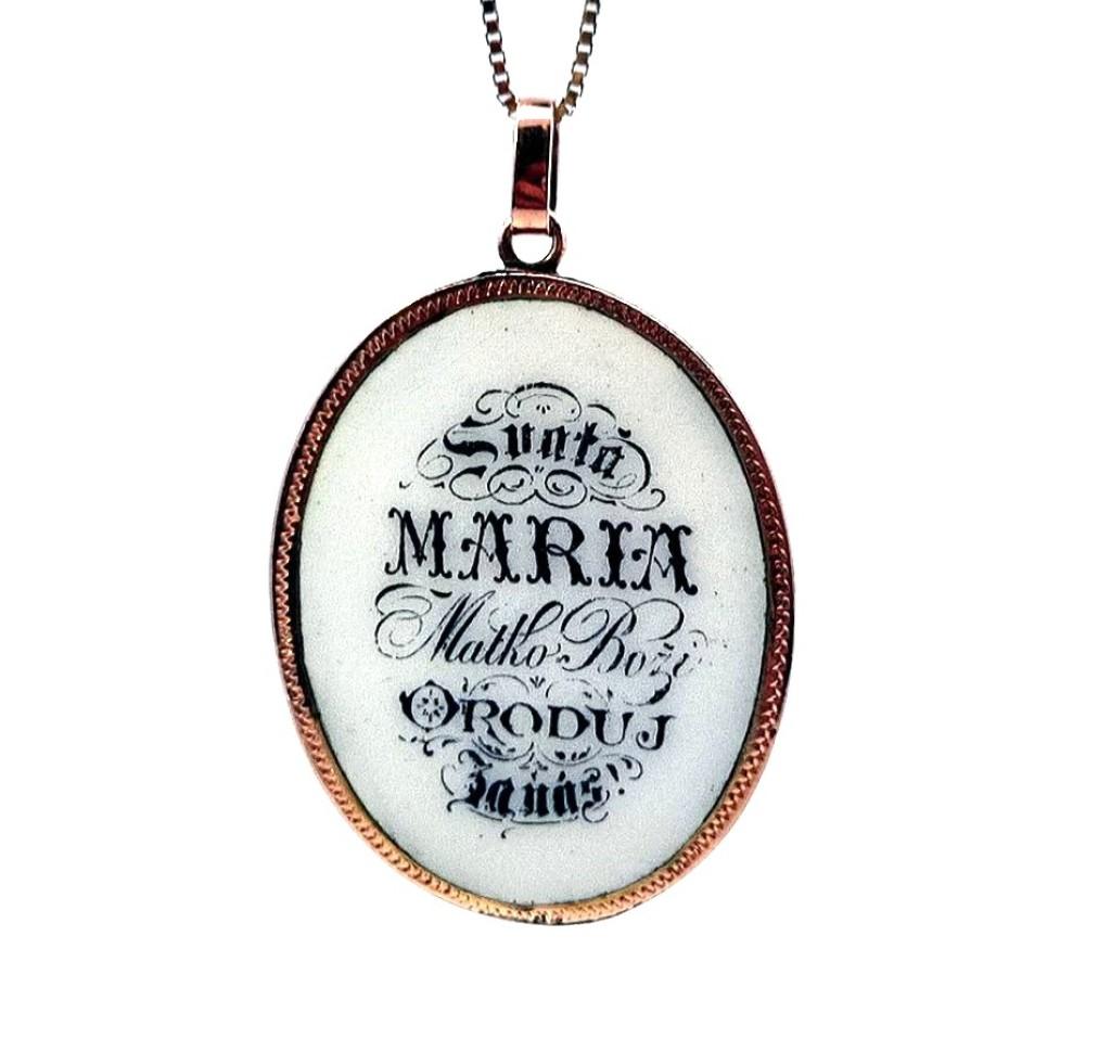Zlatý přívěs o ryzosti 500/1000, očko o ryzosti 585/1000, punc Z a slunce. Váha 6,14 g, výška včetně očka 38 mm, v nejširším bodě 25 mm.