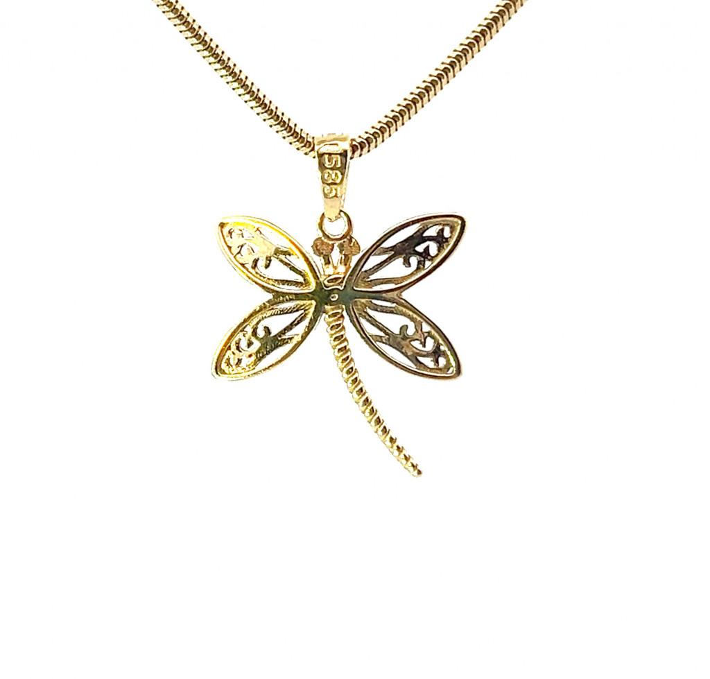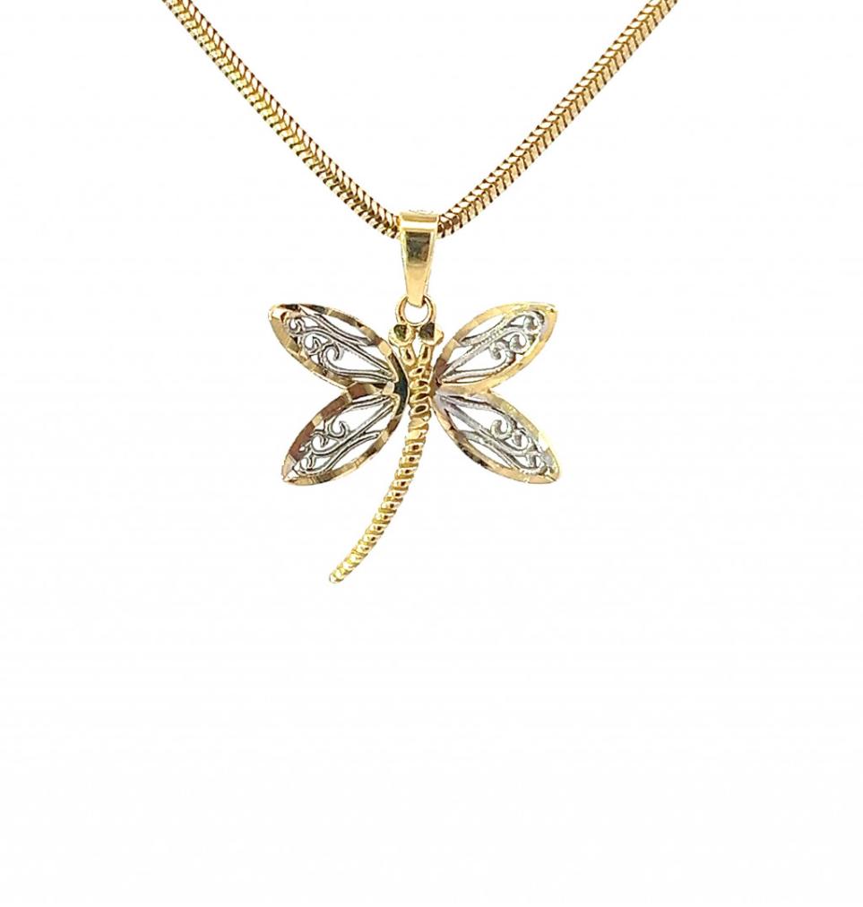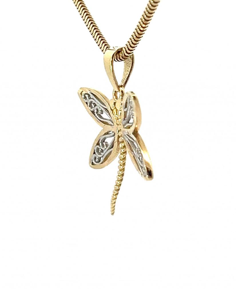 Přívěs z kombinace žlutého a bílého zlata o ryzosti 585/1000, punc labuť. Váha 1,08 g, výška včetně očka 23 mm, v nejširším bodě 17 mm. Řetízek není součástí přívěsu.