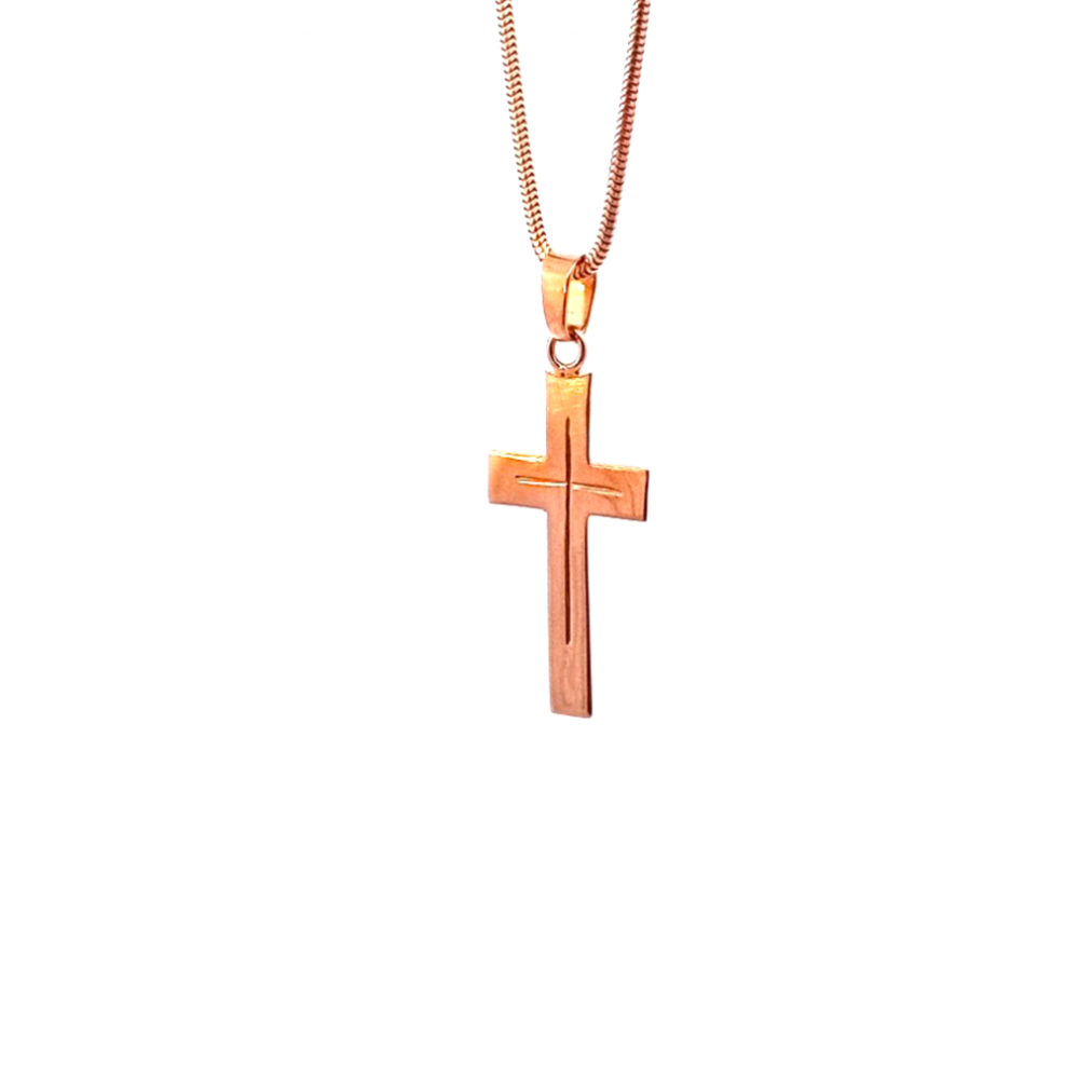 Přívěsek ze žlutého zlata o ryzosti 585/1000 s puncem labuť ve tvaru kříže. Váha 1,09 g, výška včetně očka 35 mm, v nejširším bodě 15 mm. Řetízek není součástí přívěsu.