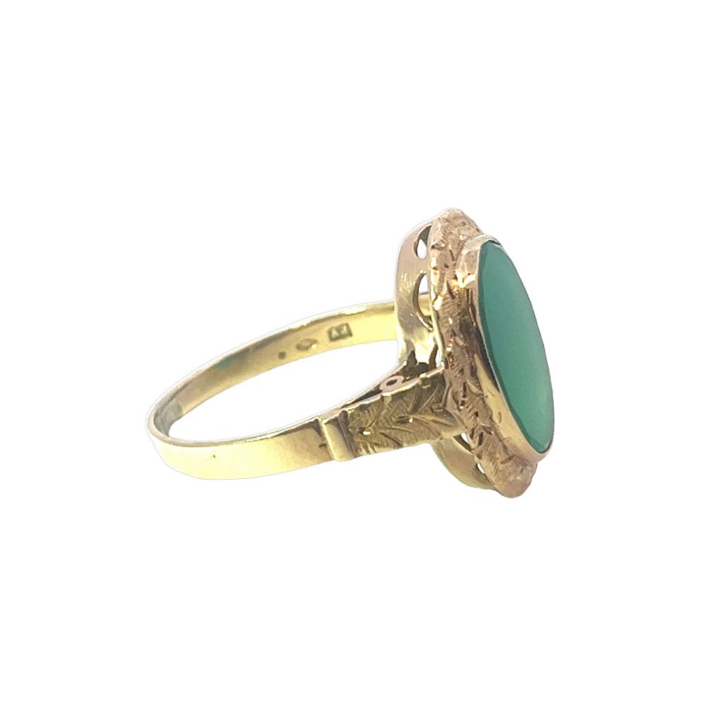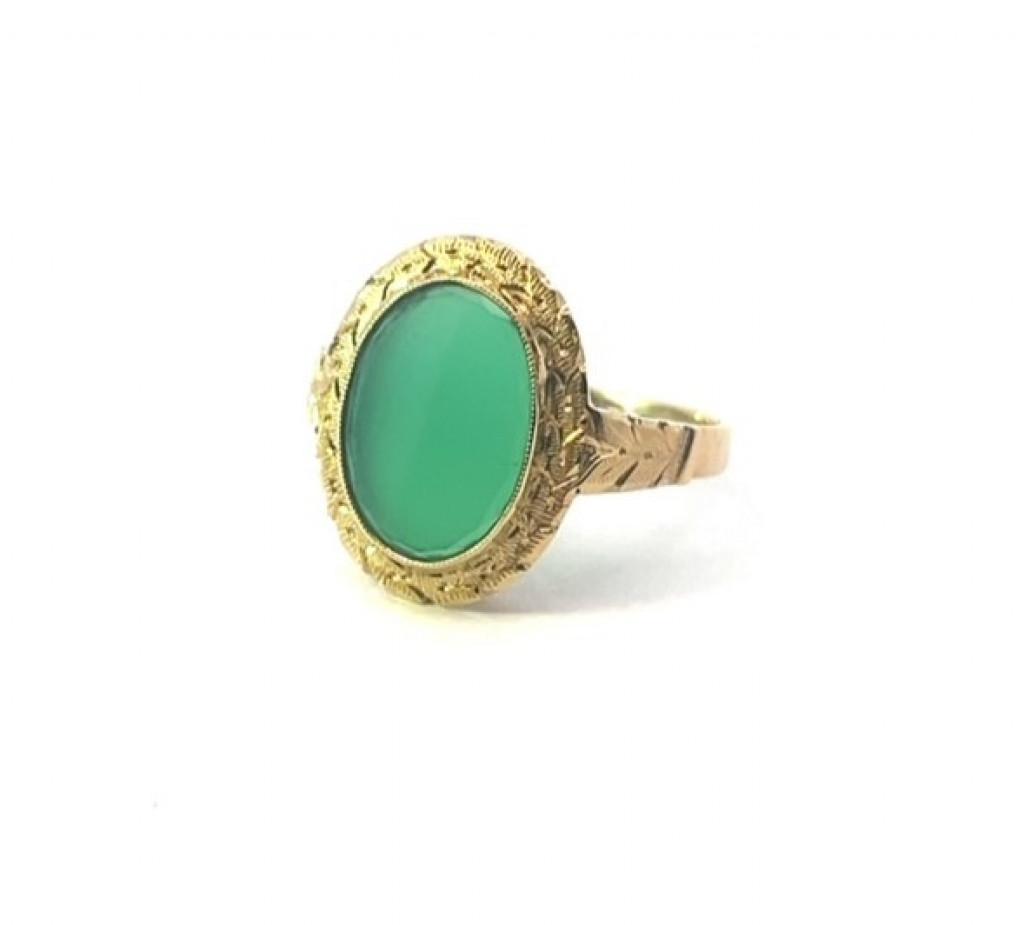 Zlatý prsten o ryzosti 585/1000, punc čejka, Velikost 60, váha 4,50 g, rozměr hlavy prstenu 18 x 15 mm.