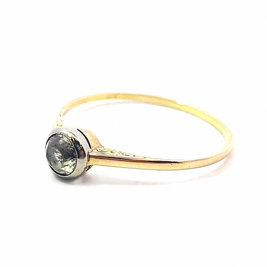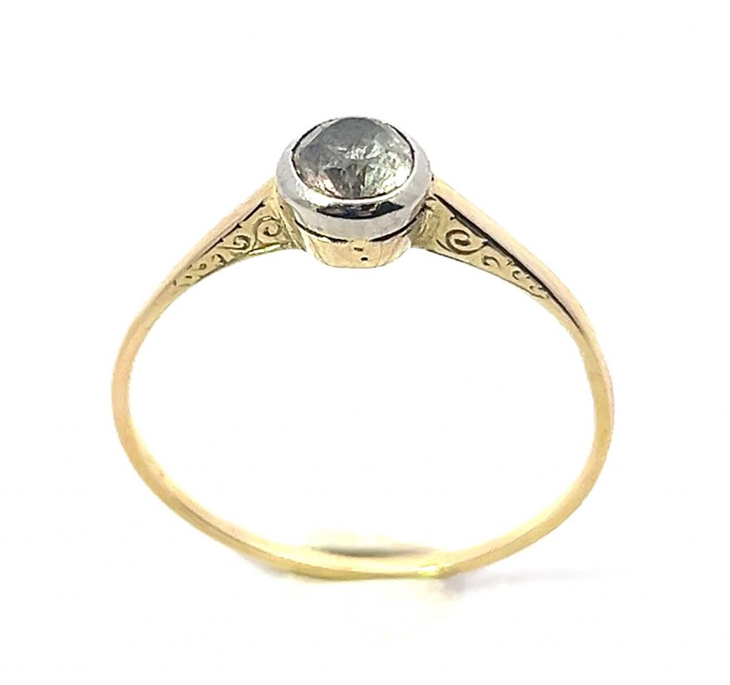 Zlatý prsten o ryzosti 585/1000, punc labuť. Velikost 61, váha 1,61 g, v nejširším bodě 6 mm.