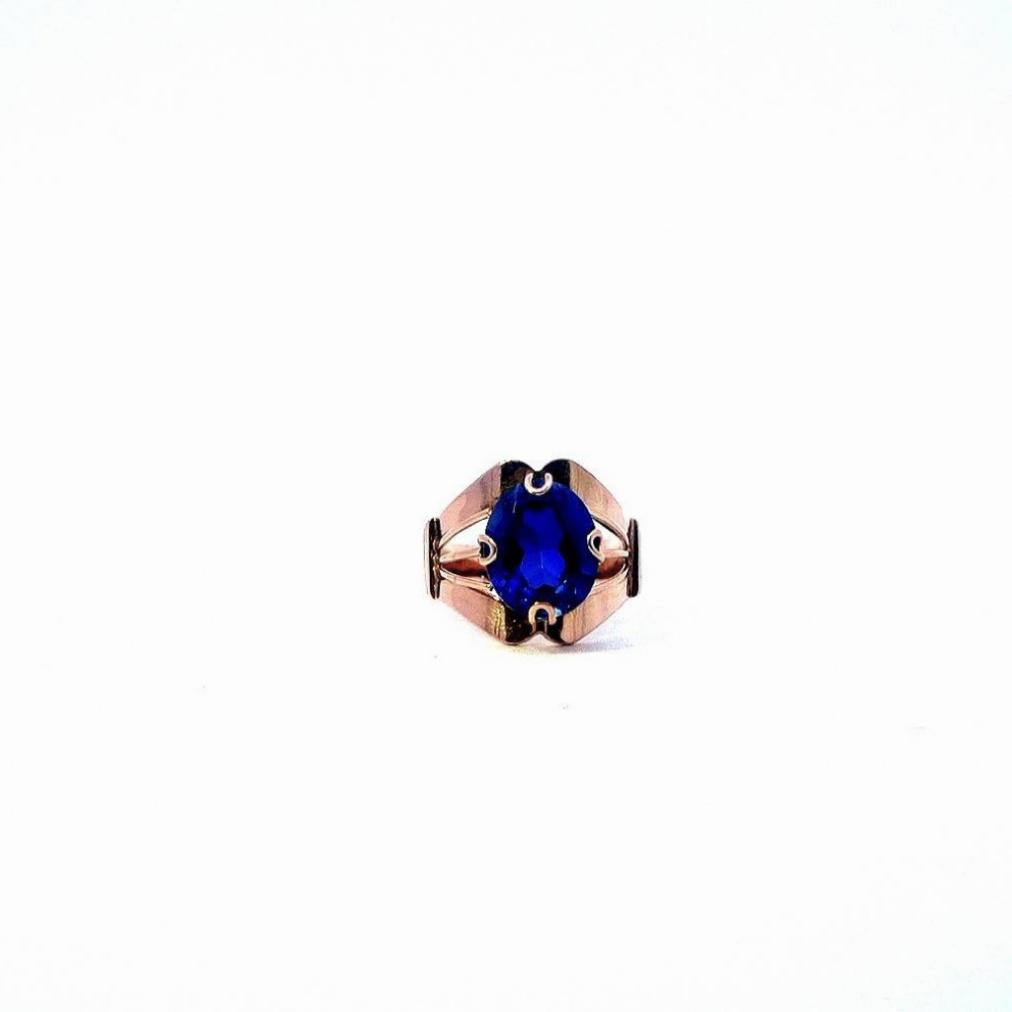 Zlatý prsten s modrým kamenem, vel. 56