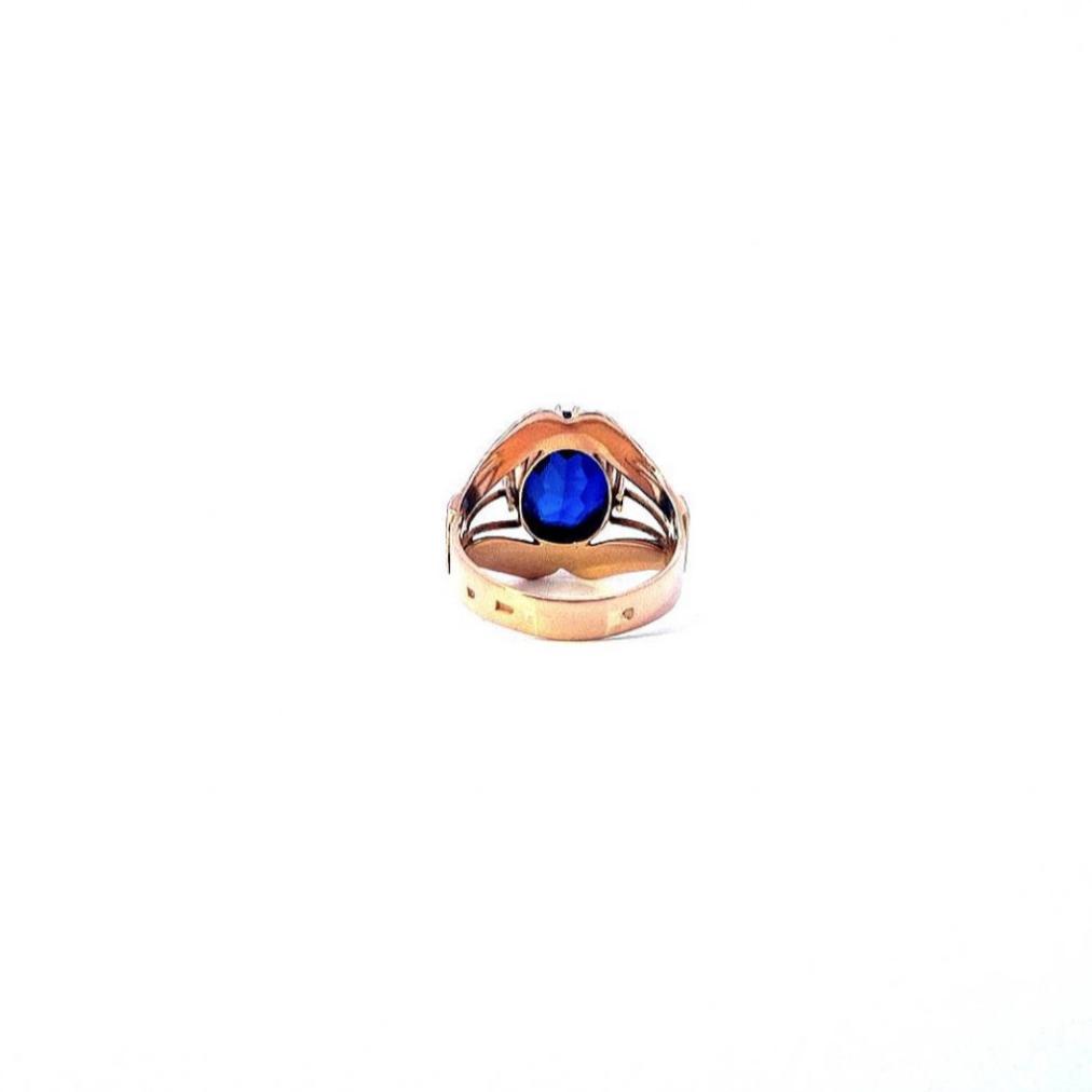 Prsten z růžového zlata o ryzosti 585/1000, punc labuť. Velikost 56, váha 6,15 g, rozměr hlavy prstenu 17 x 18 mm. Kámen je syntetický.