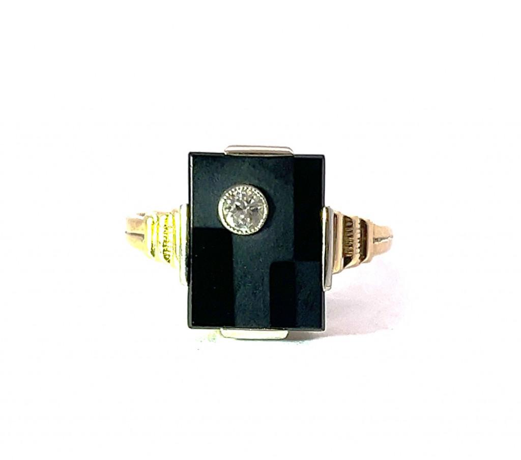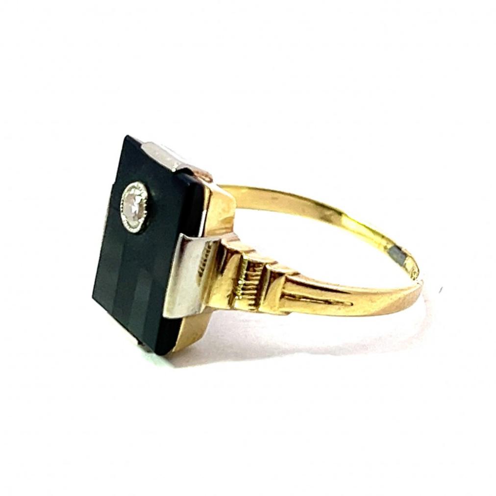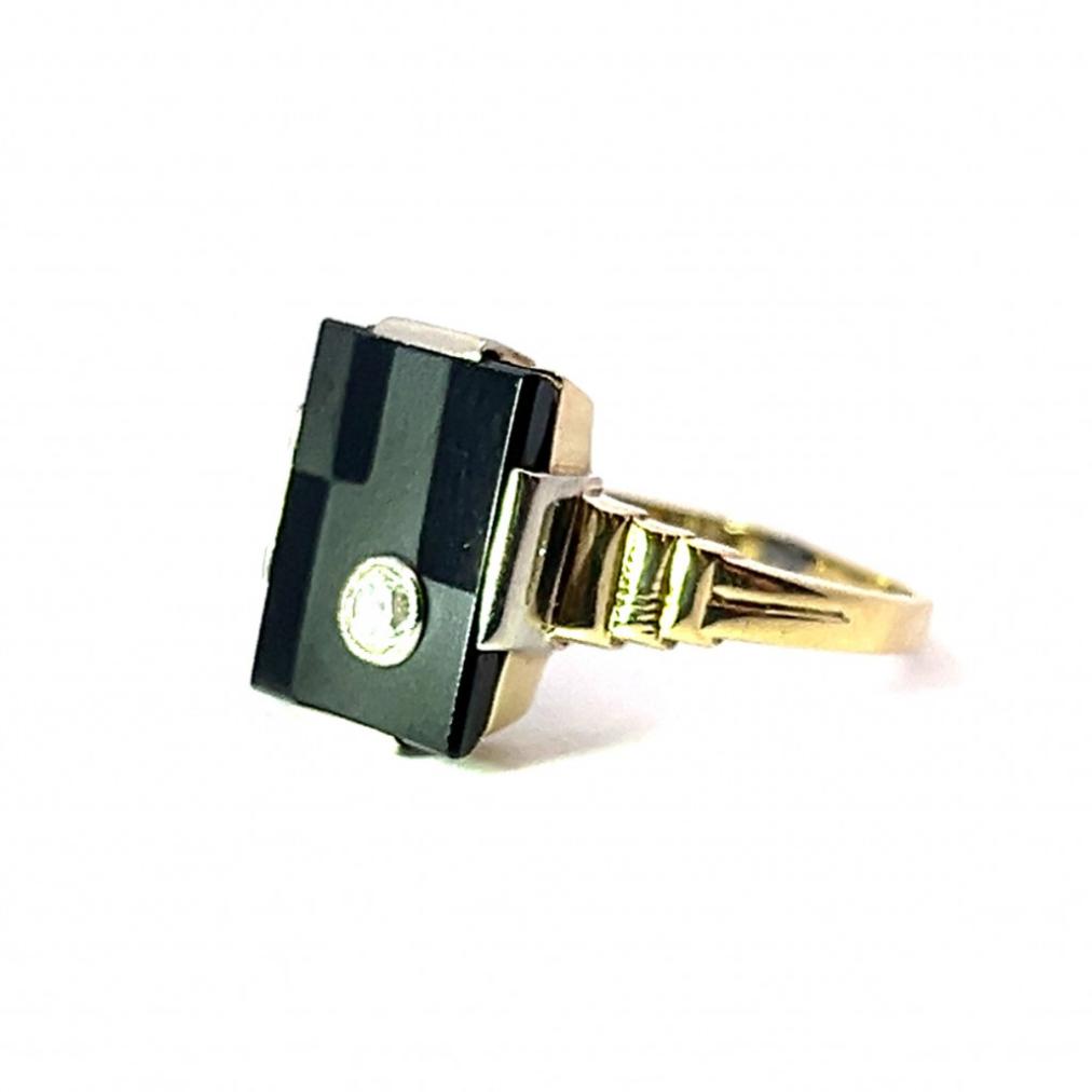 Zlatý prsten s onyxem a leukosafírem, vel. 55