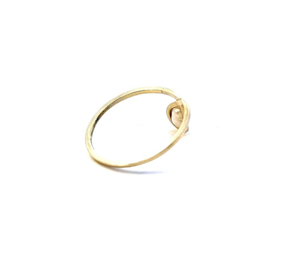 Zlatý prsten o ryzosti 585/1000, punc čejka, Velikost 56,5, váha 1,17 g, v nejširším bodě 10 mm, rozměr perly 5 x 3 mm.