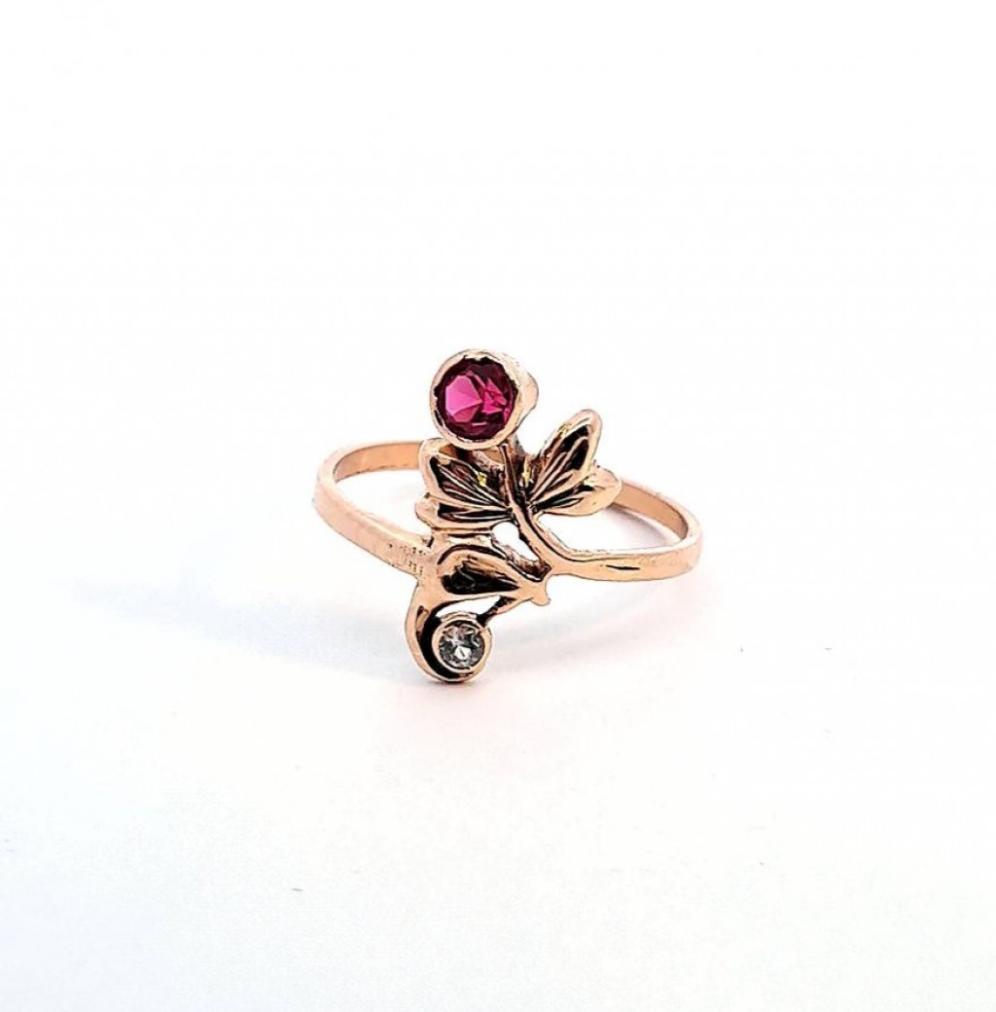 Zlatý prsten s rubínem a leukosafírem, vel. 53