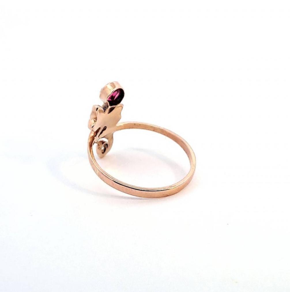Prsten z růžového zlata o ryzosti 585/1000, punc labuť. Velikost 53, váha 2,04 g, v nejširším bodě 16 mm.