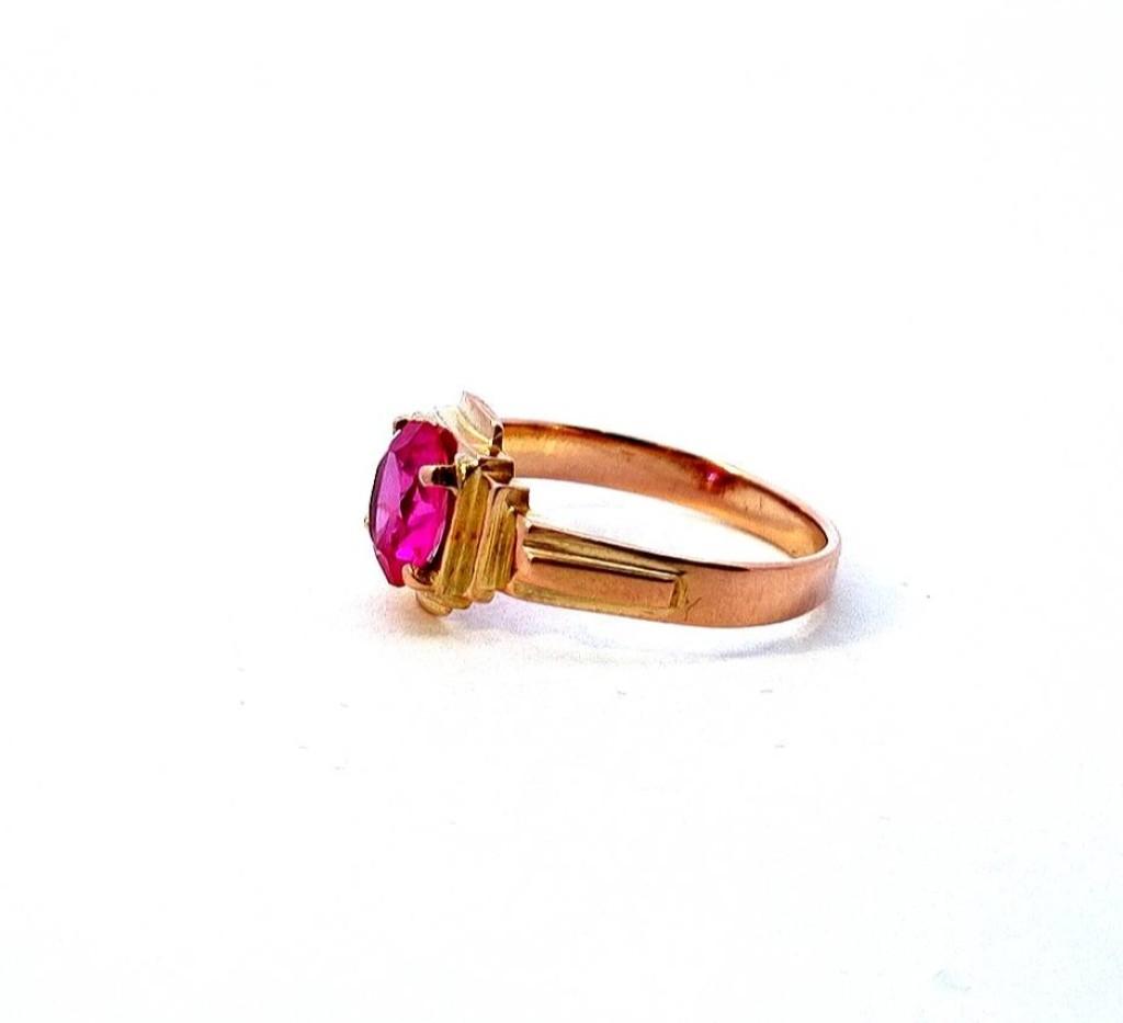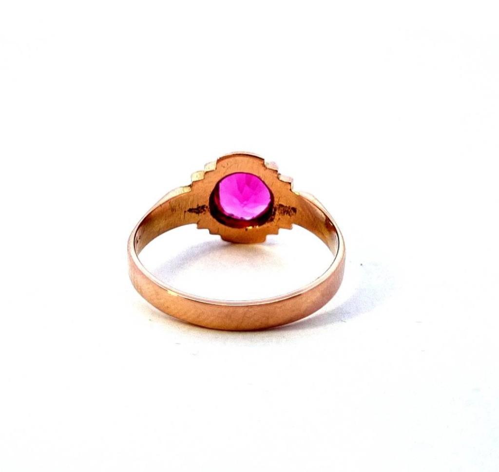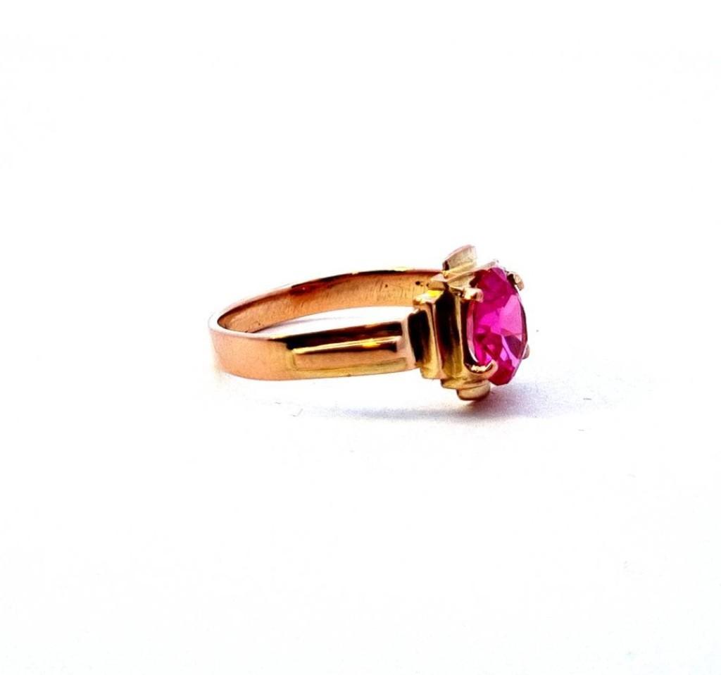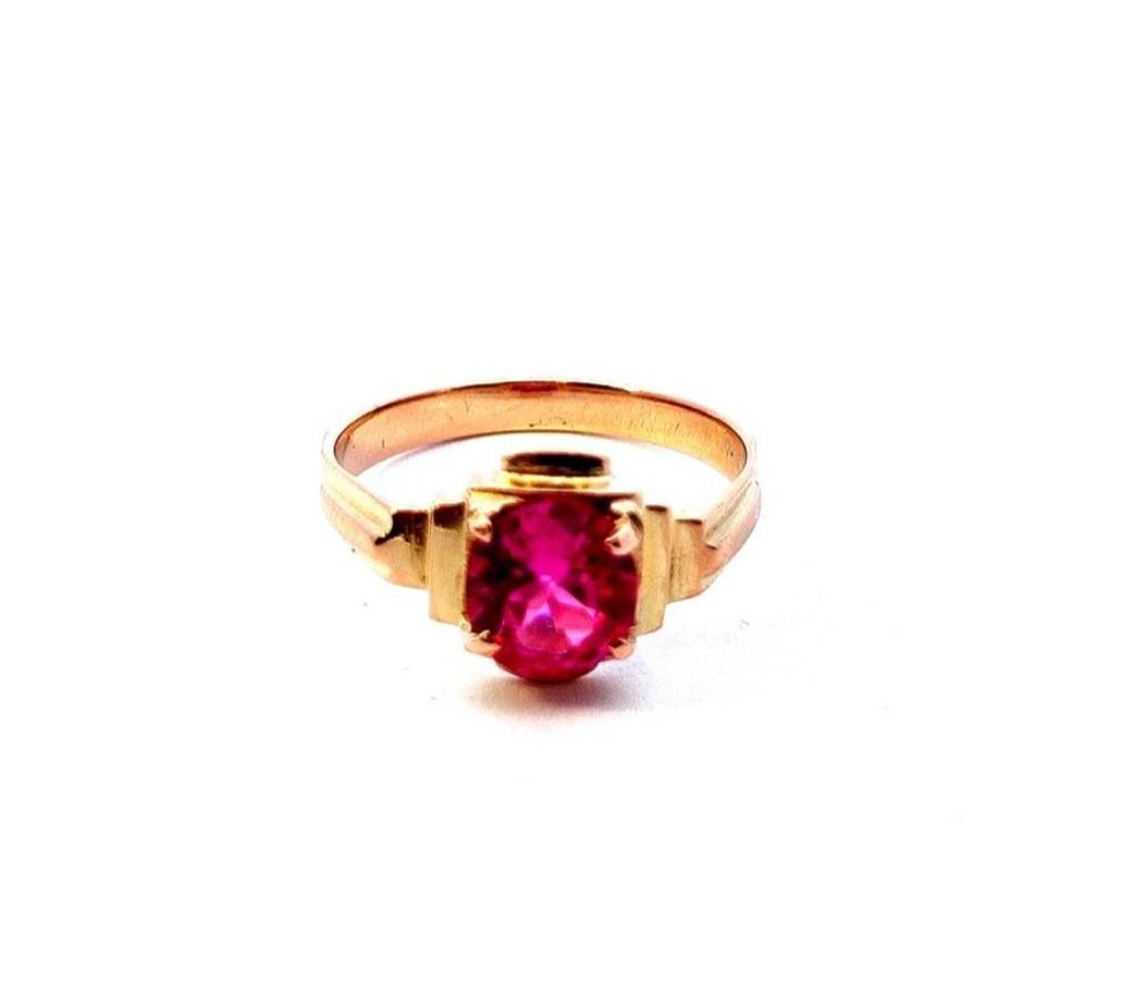 Zlatý prsten s růžovým kamenem, rubín, vel. 54