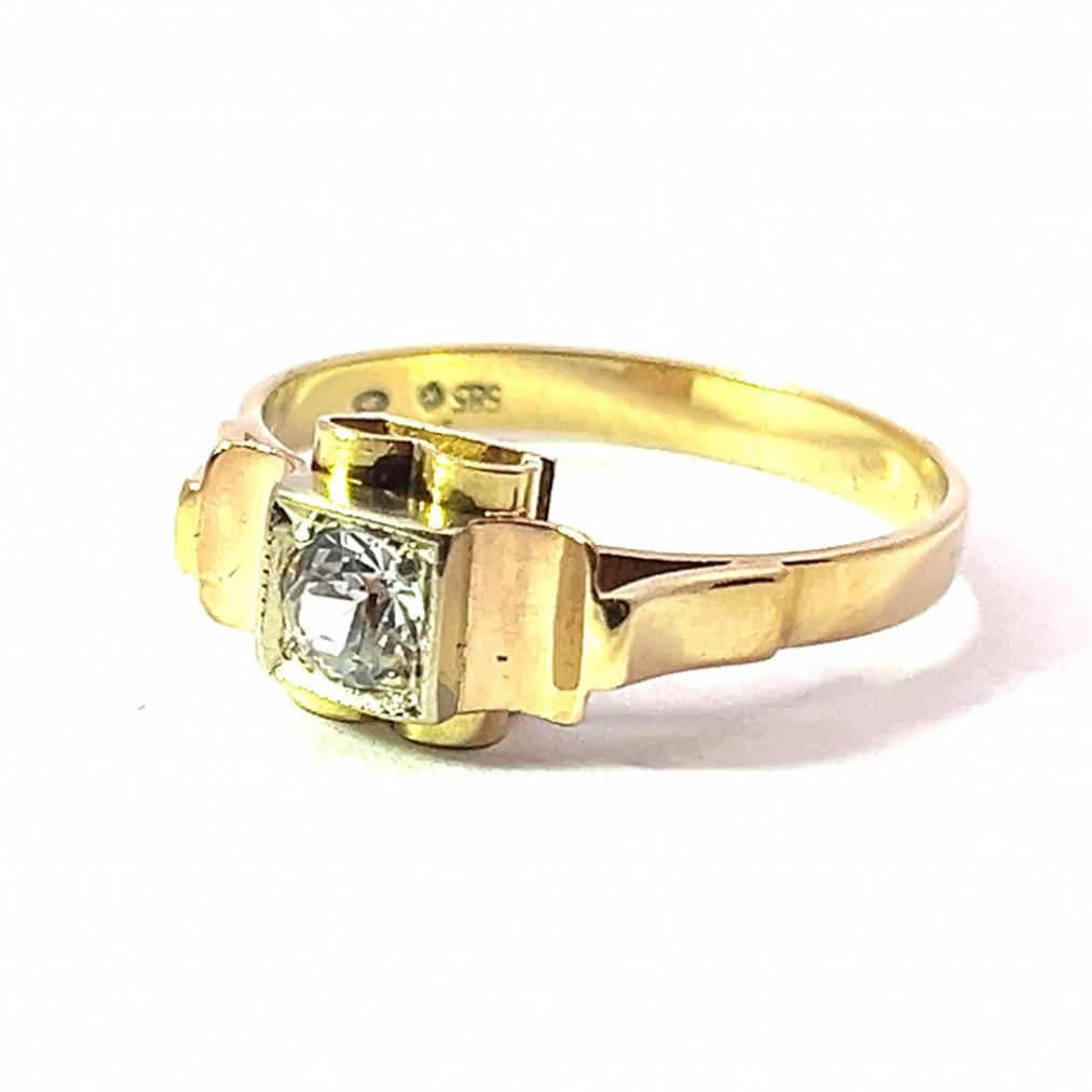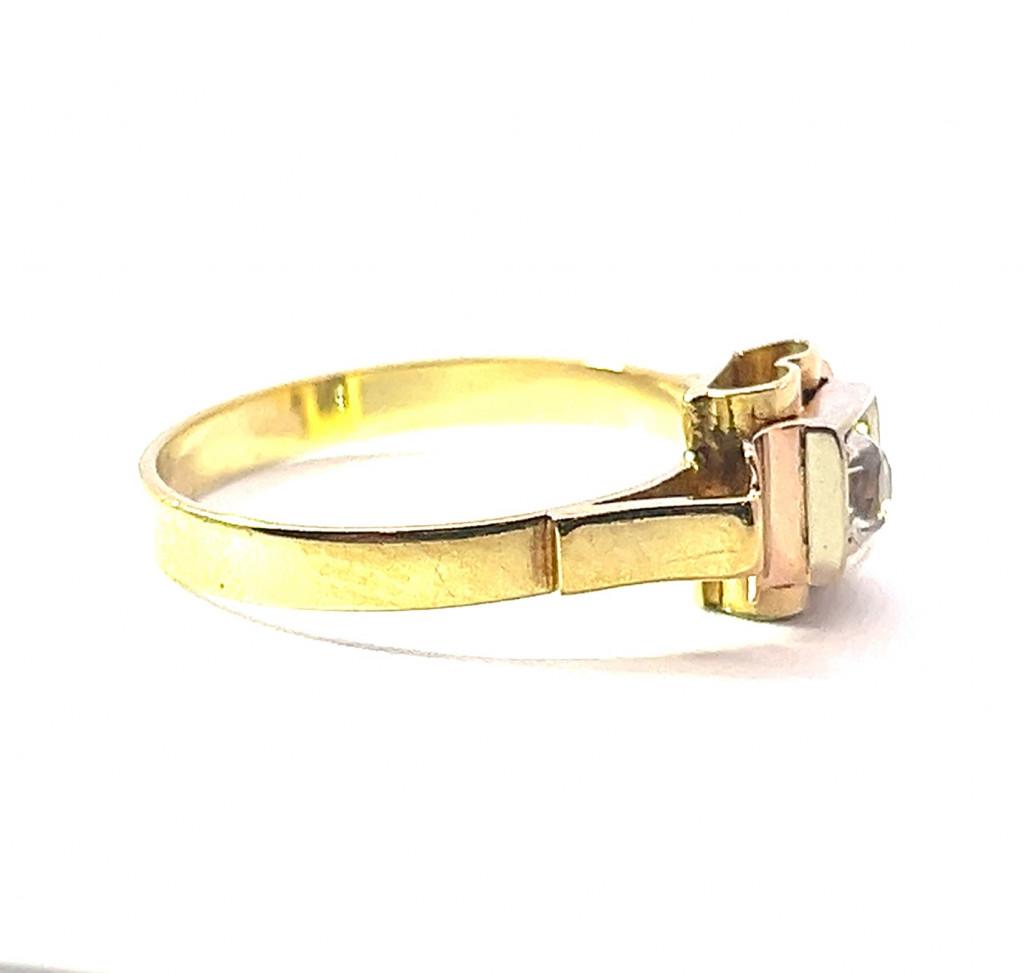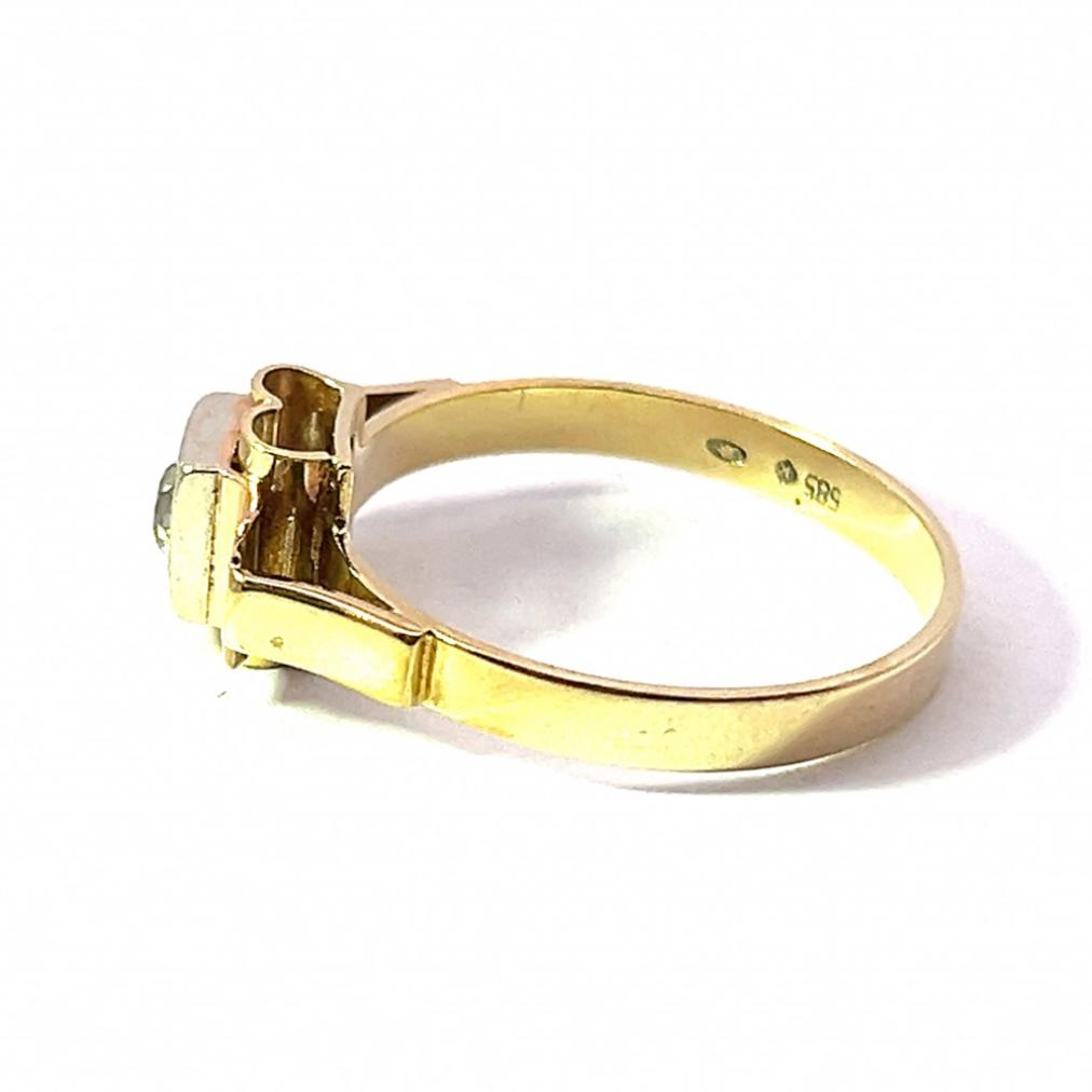 Zlatý prsten s růžovým zlatem a leukosafírem, vel. 58