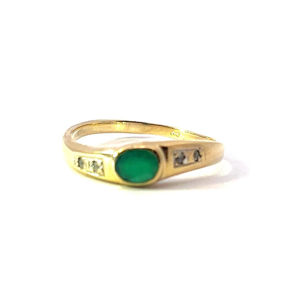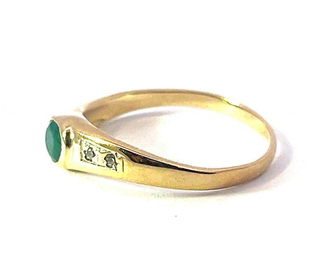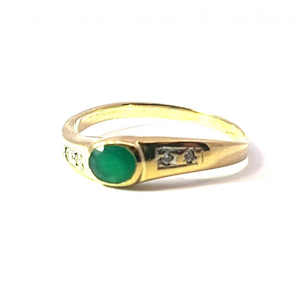 Zlatý prsten se smaragdem a zirkony, vel. 55