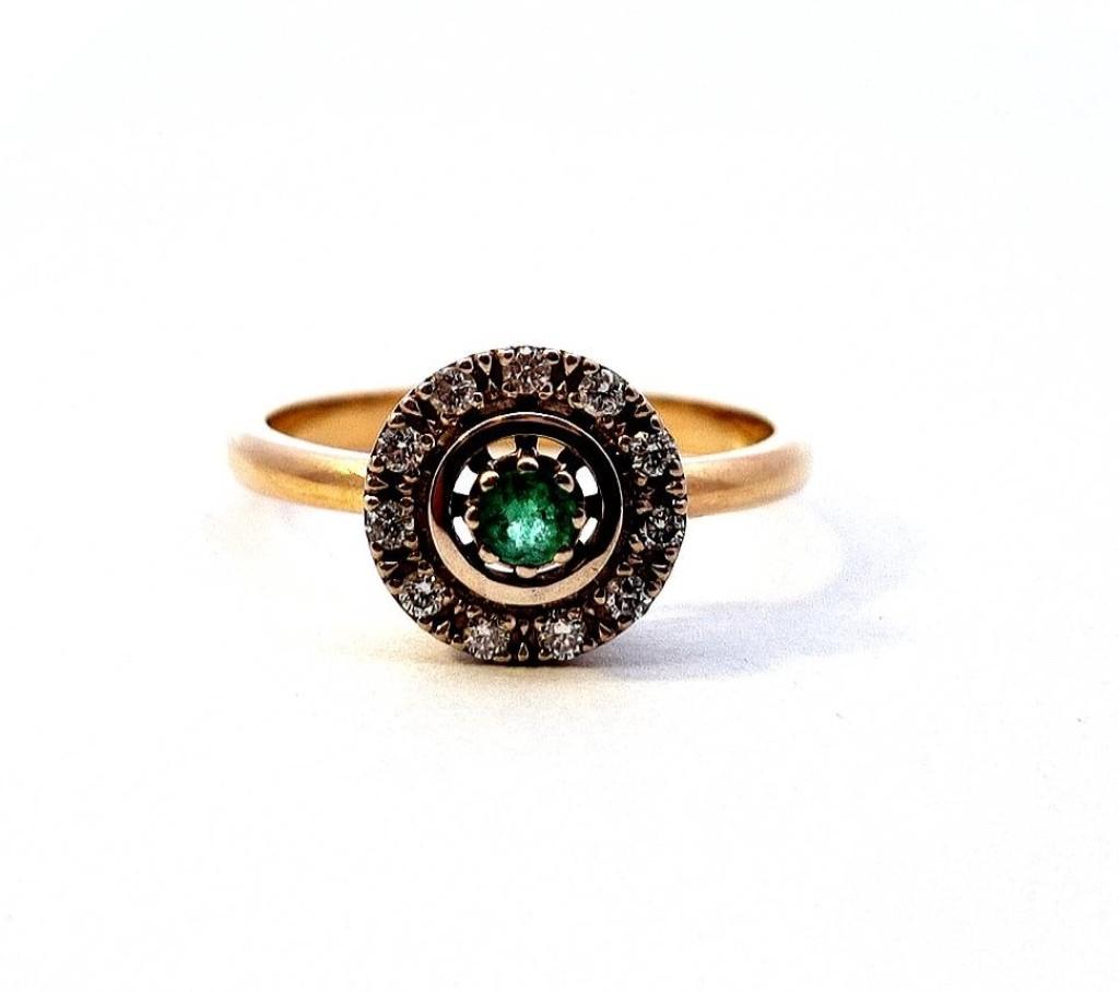 Zlatý prsten se smaragdy a diamanty, vel. 54