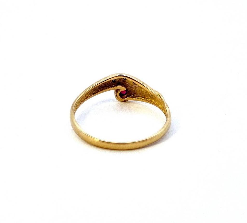 Zlatý prsten se zirkony a červeným kamínkem, rubín, vel. 57