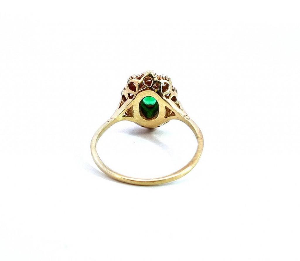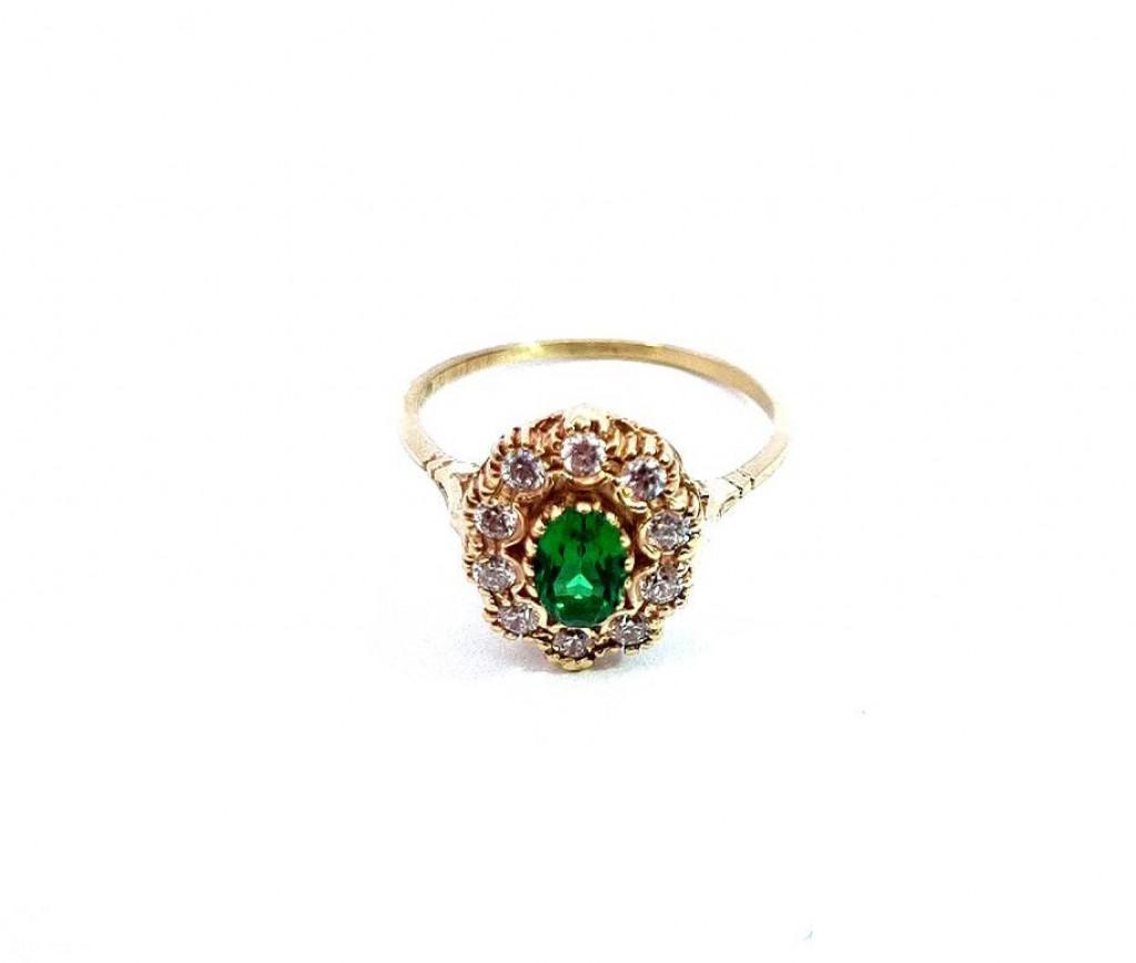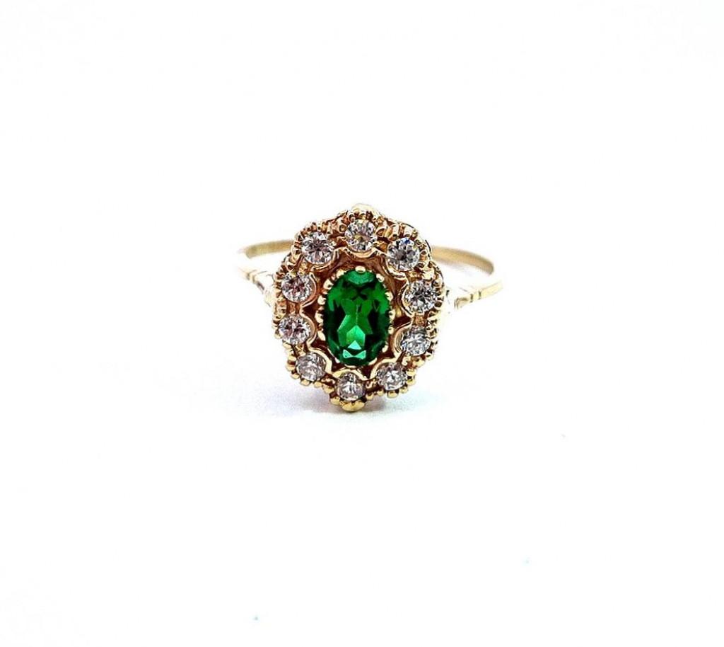 Zlatý prsten se zirkony a smaragdem, vel. 55
