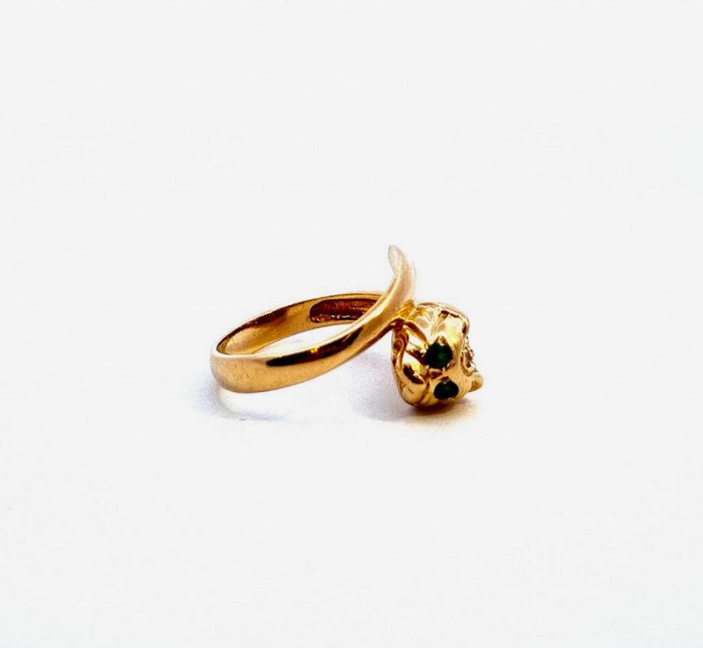 Zlatý prsten se zirkony a smaragdy, šelma, vel. 54