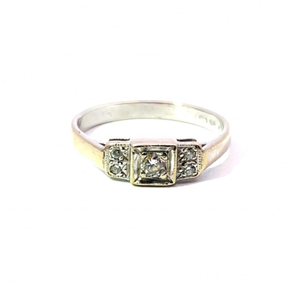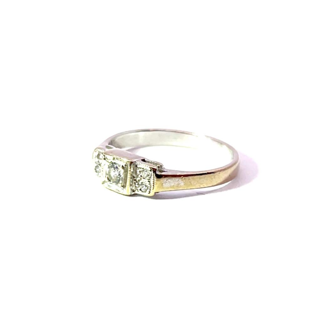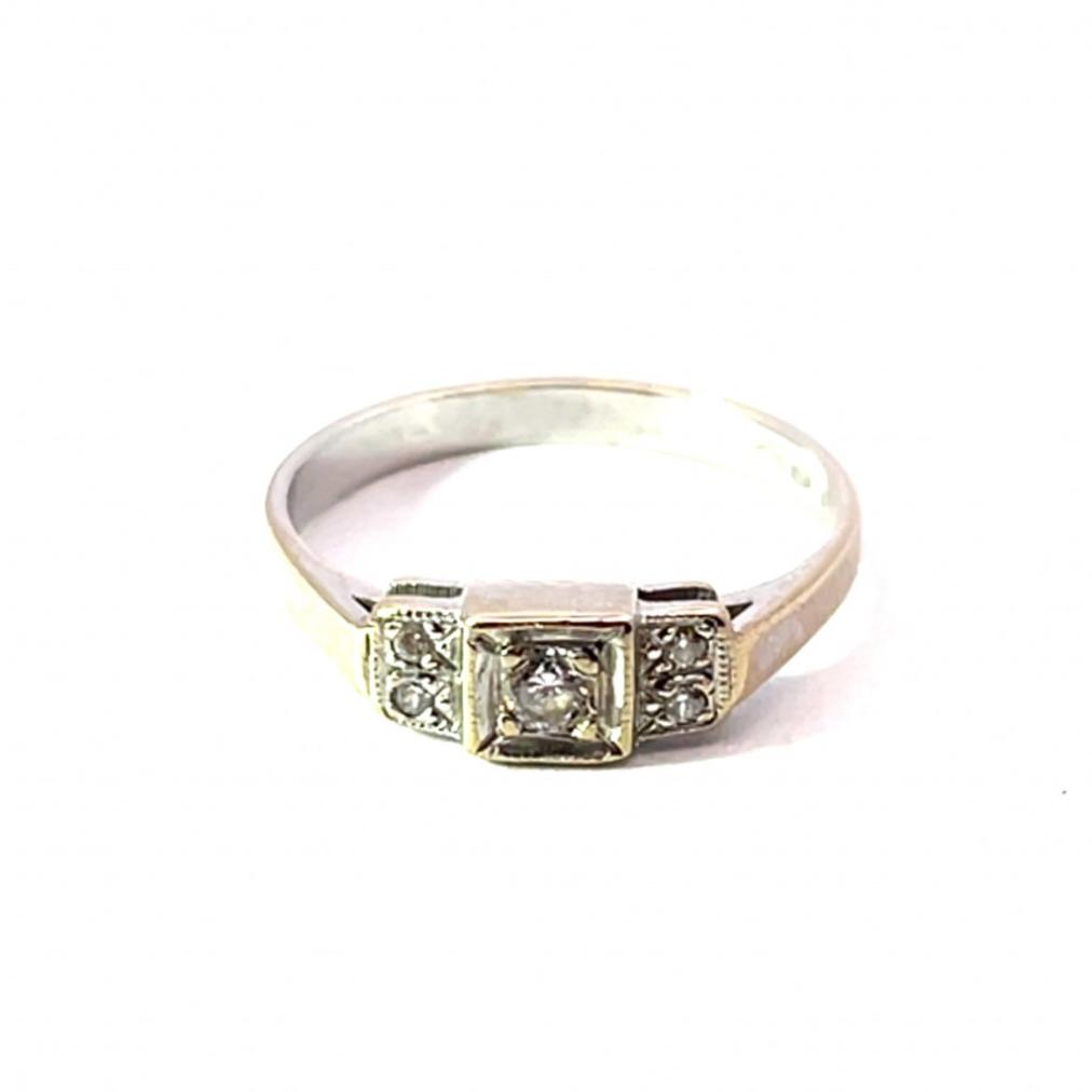 Prsten z bílého zlata o ryzosti 585/1000, punc labuť. Velikost 48, váha 1,75 g, v nejširším bodě 4,5 mm.
