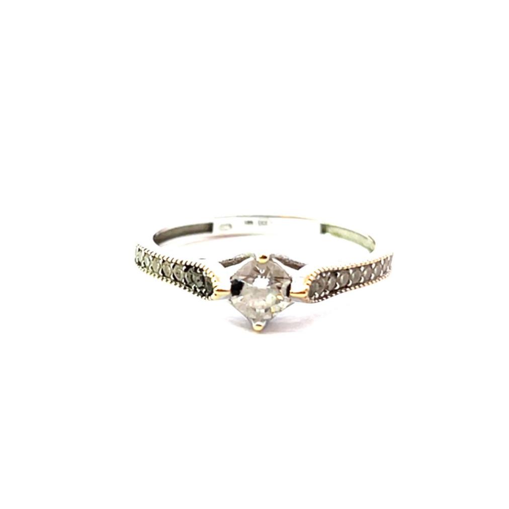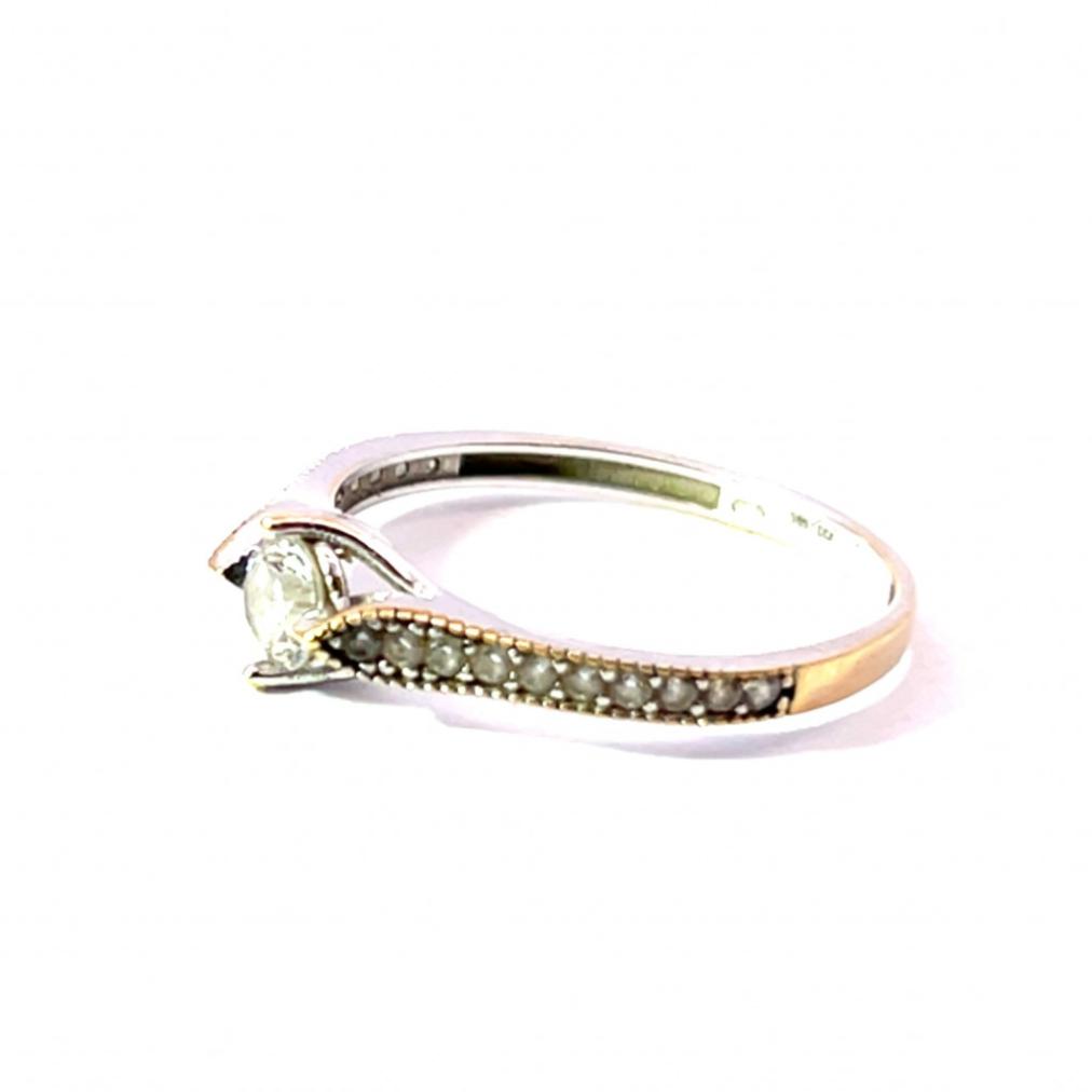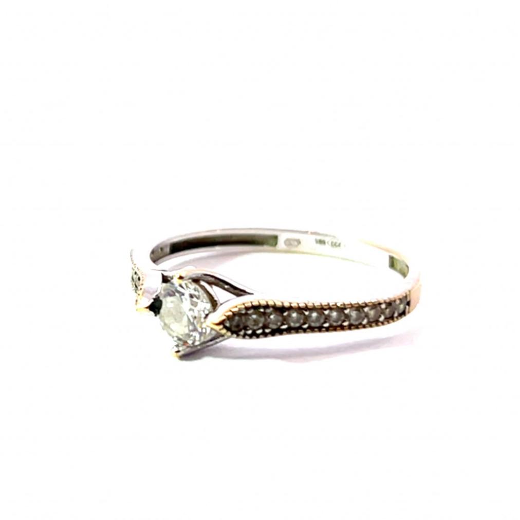Prsten z bílého zlata o ryzosti 585/1000, punc labuť. Velikost 53, váha 1,49 g, v nejširším bodě 6 mm.