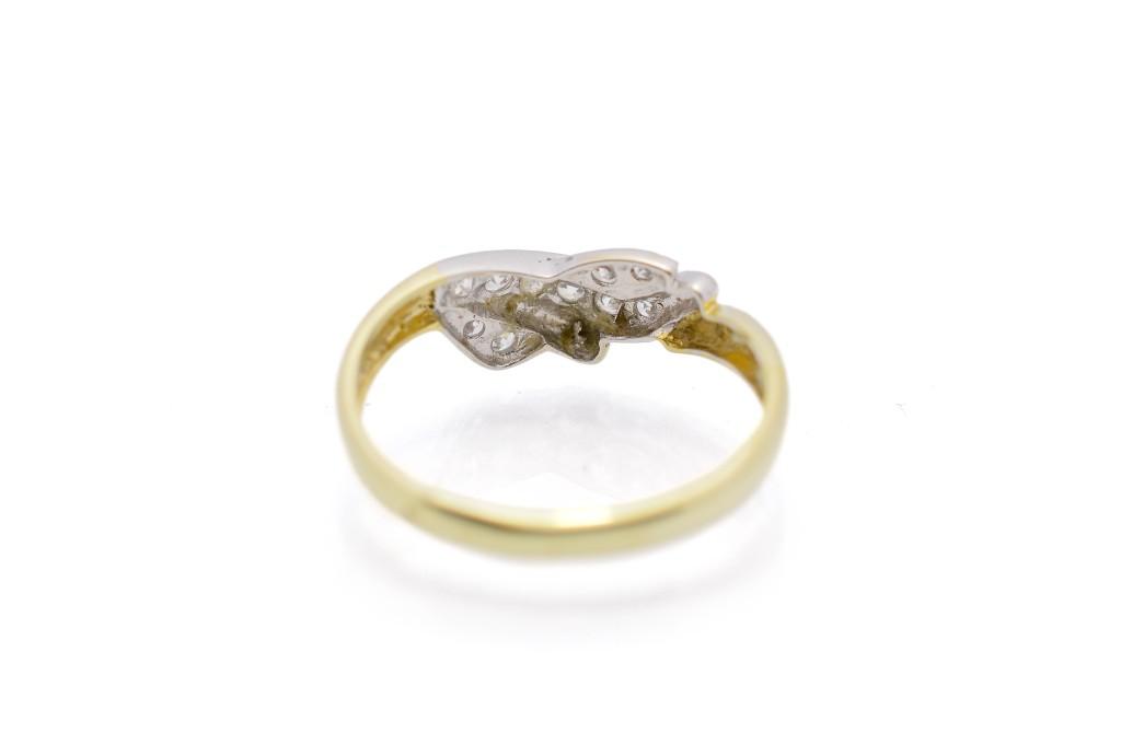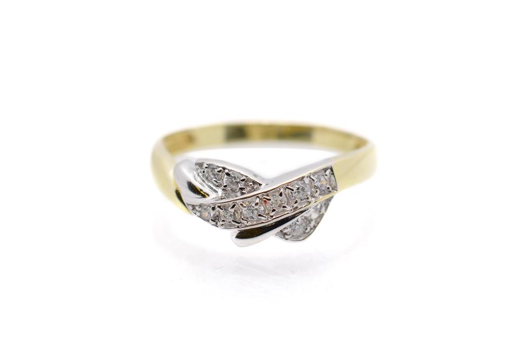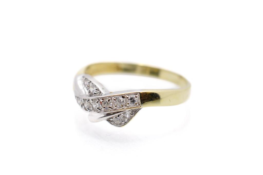 Zlatý prsten o ryzosti 585/1000, punc labuť, váha 2,34 g, velikost 57, v nejširším bodě 6 mm.