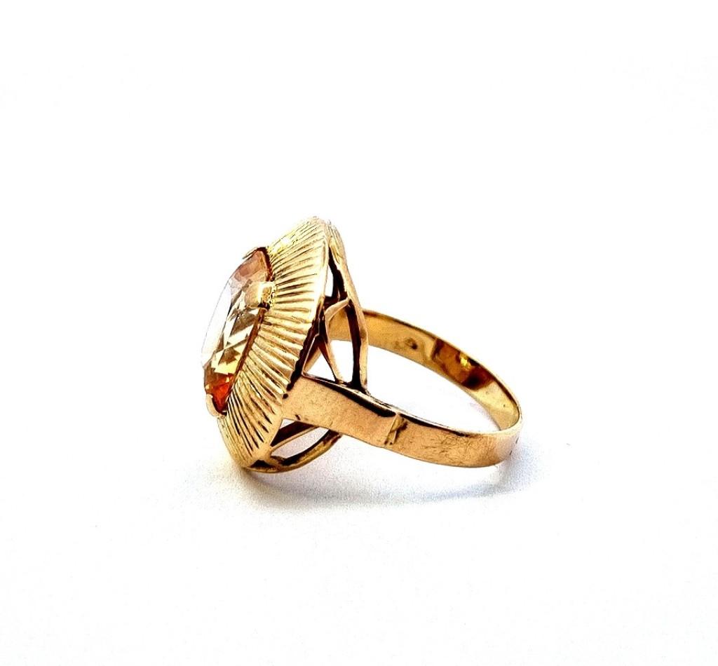 Zlatý prsten se žluto-oranžovým kamenem - citrín, vel. 53