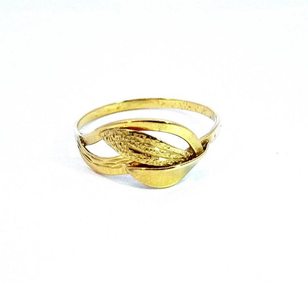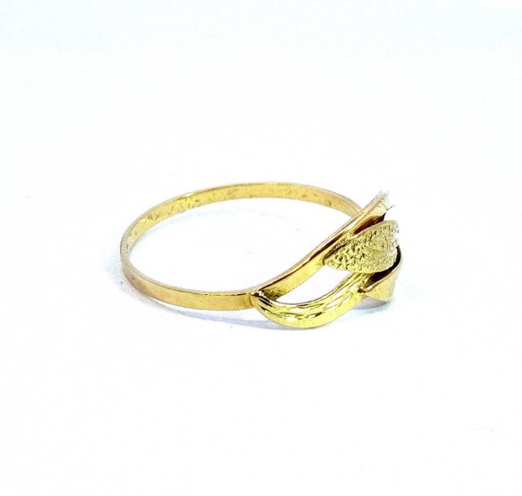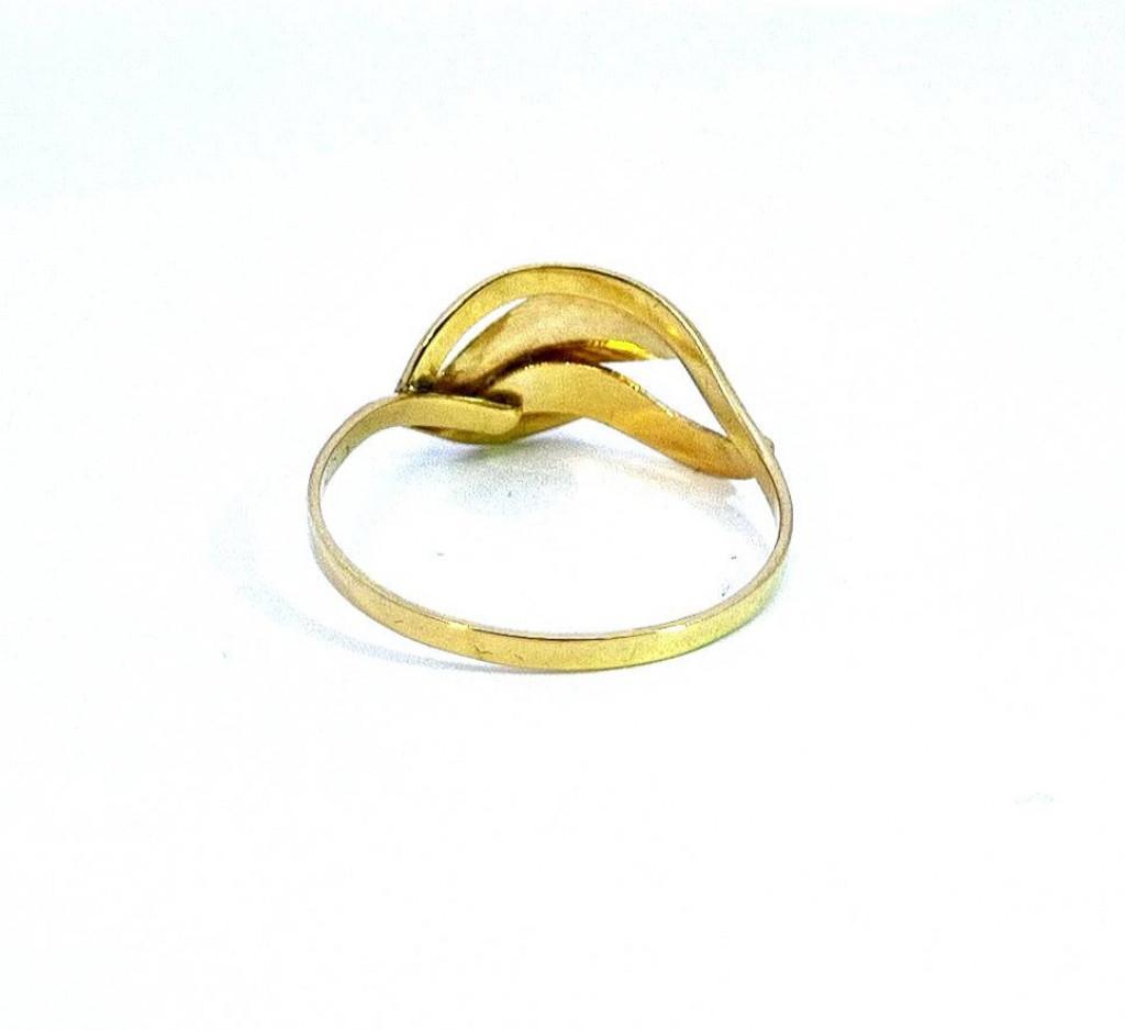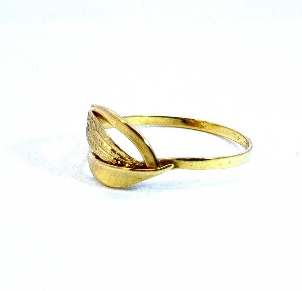 Zlatý prsten o ryzosti 585/1000, punc labuť. Velikost 64, váha 1,88 g, v nejširším bodě 10 mm.