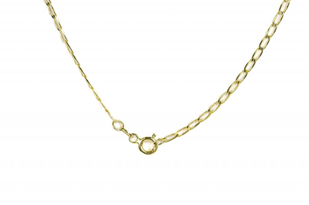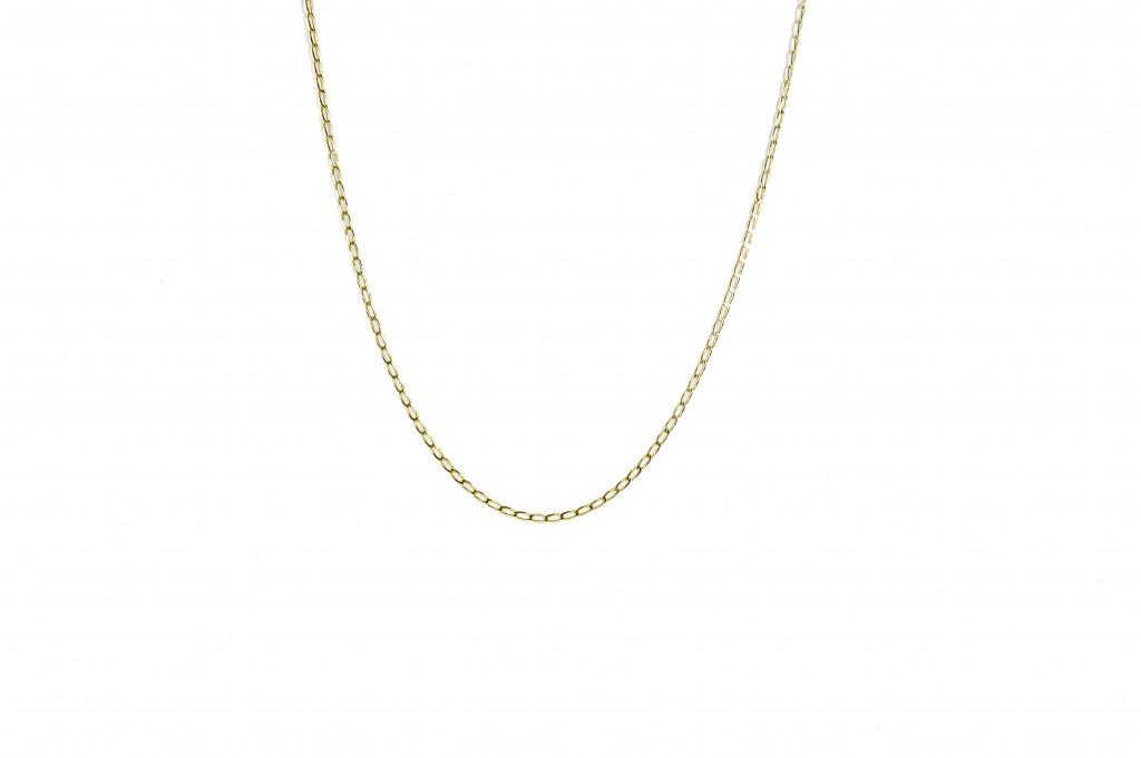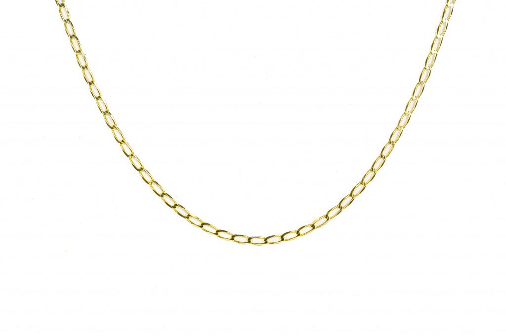 Zlatý řetízek o ryzosti 585/1000, punc labuť. Váha 1,72 g, délka 50 cm, šířka 1 mm.