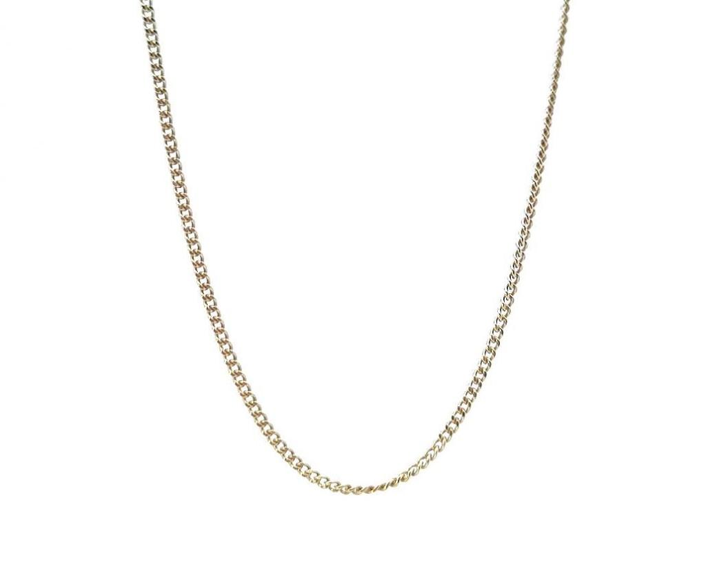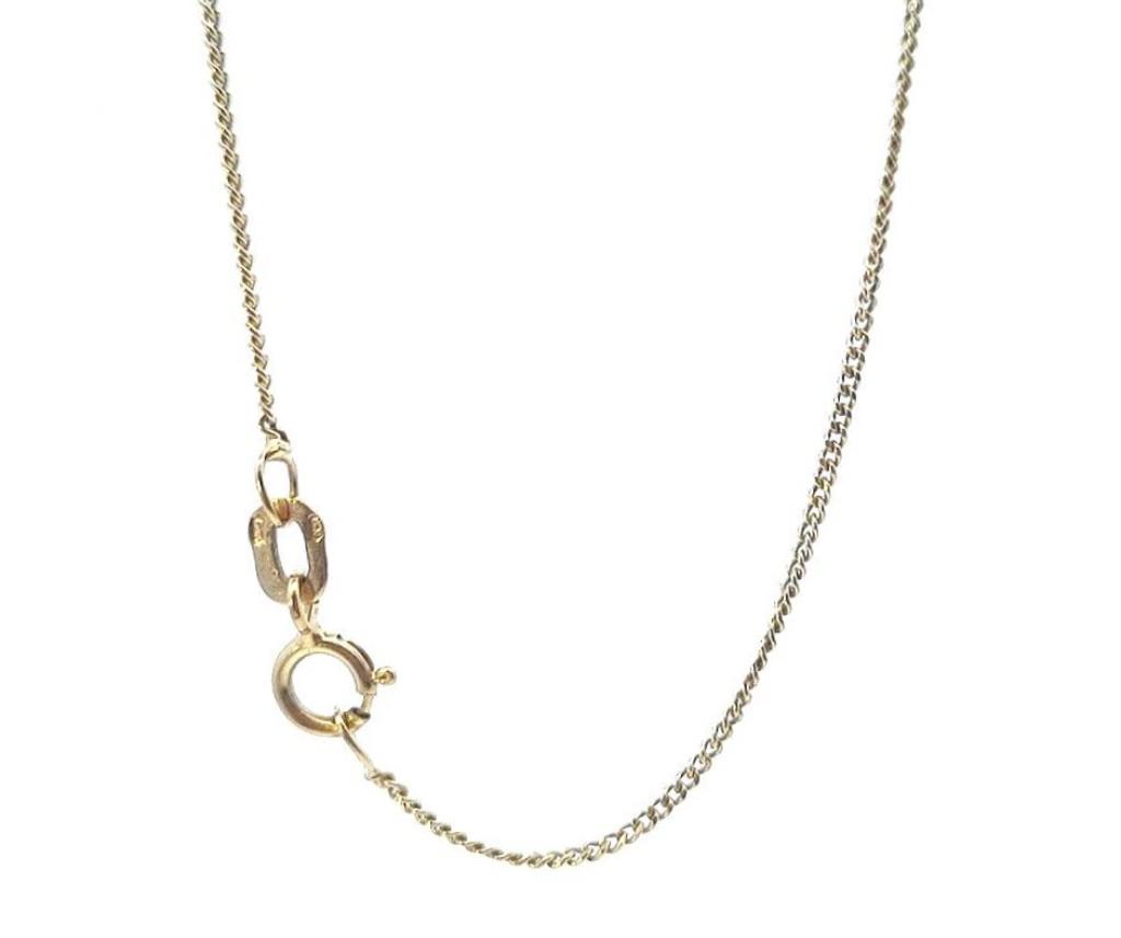 Zlatý řetízek o ryzosti 585/1000, punc labuť. Váha 1,94 g, délka 38 cm, šířka 1 mm.