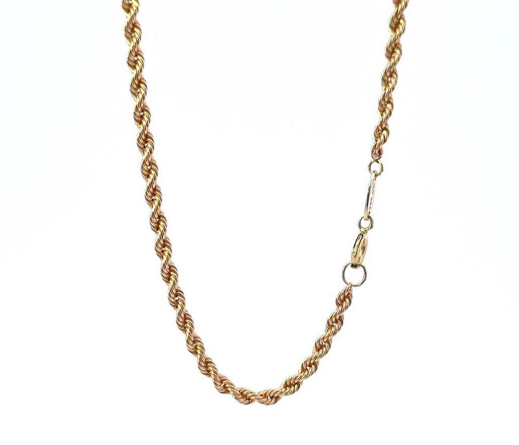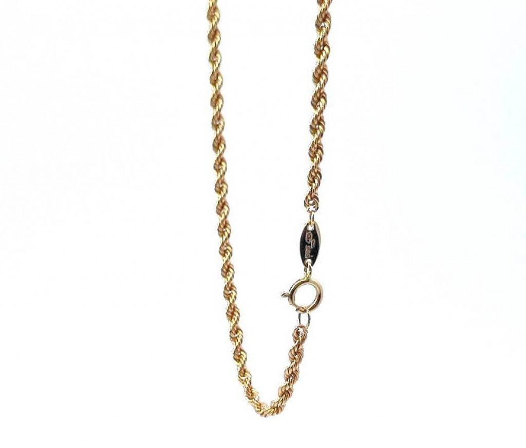 Zlatý řetízek o ryzosti 585/1000, punc labuť. Váha 2,24 g, délka 45 cm, šířka 2 mm.