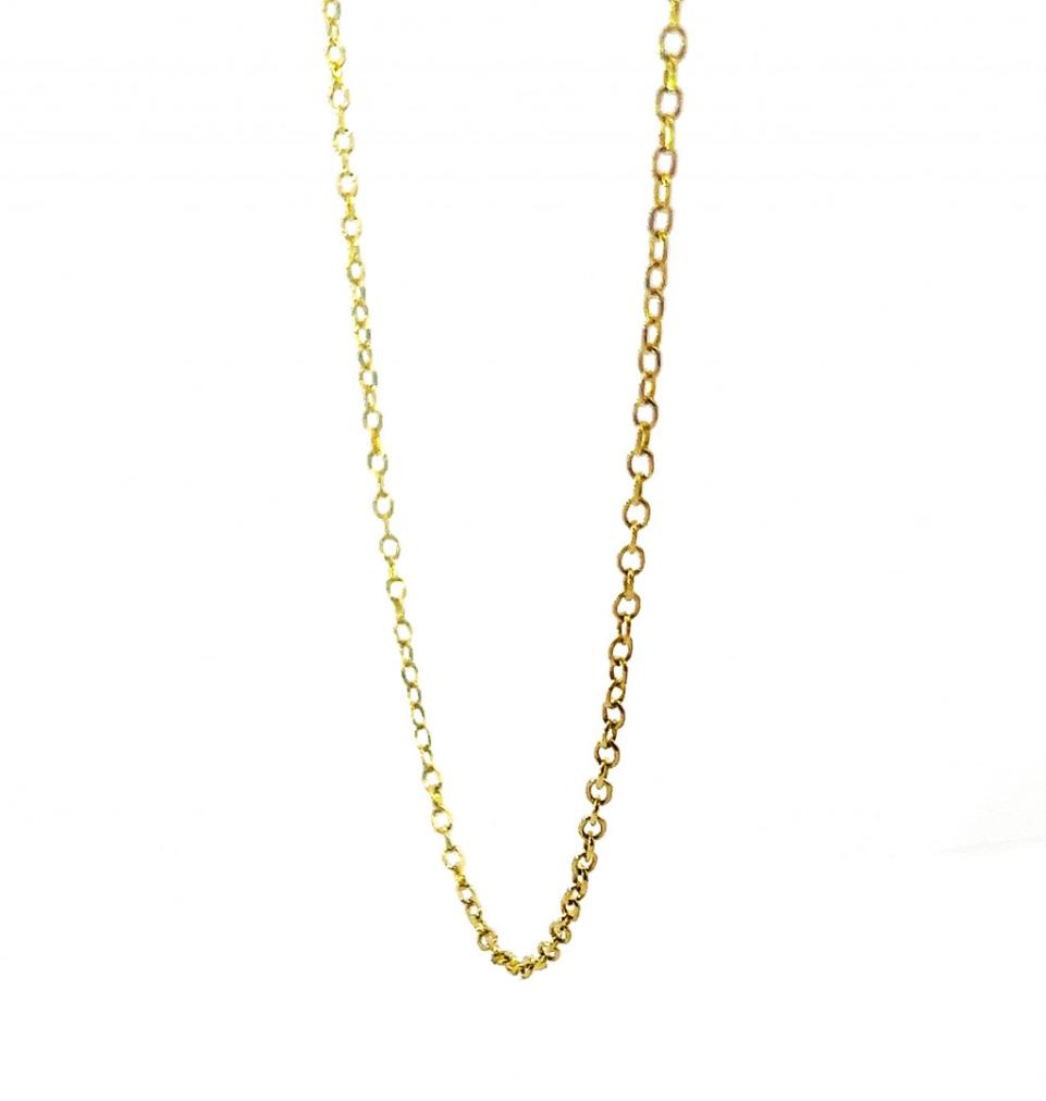 Zlatý řetízek s kulatými očky. Zlato o ryzosti 585/1000 s puncem čejka. Váha 2,26 g, délka 53 cm. Šířka oček je 1 mm.