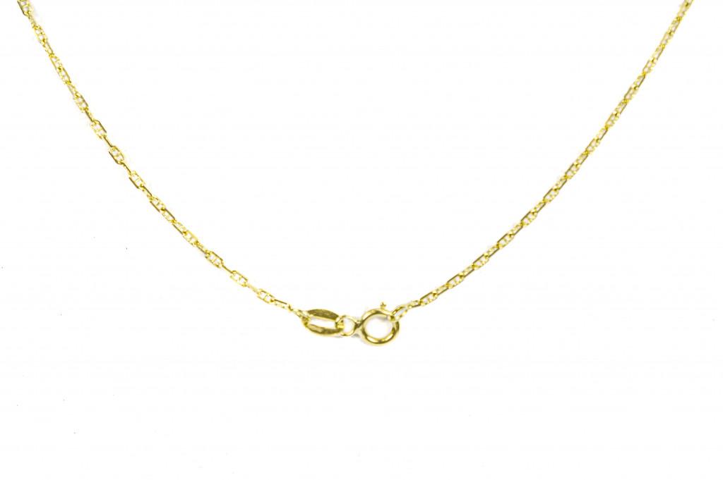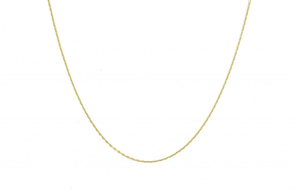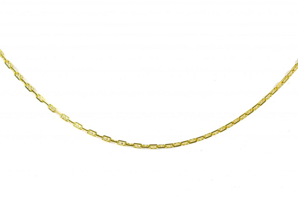 Zlatý řetízek o ryzosti 585/1000, punc labuť. Váha 2,53 g, délka 50 cm, v nejširším bodě 1 mm.
