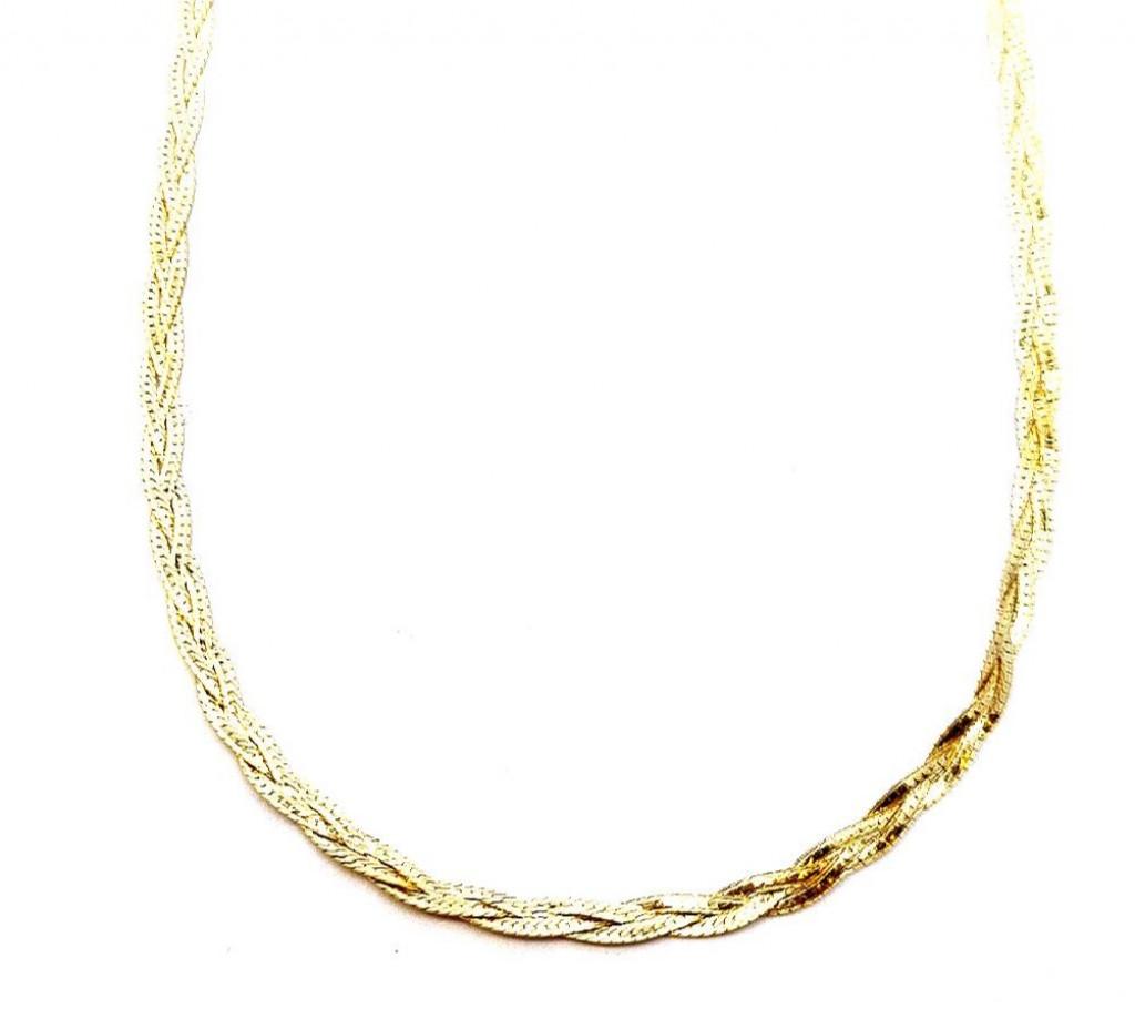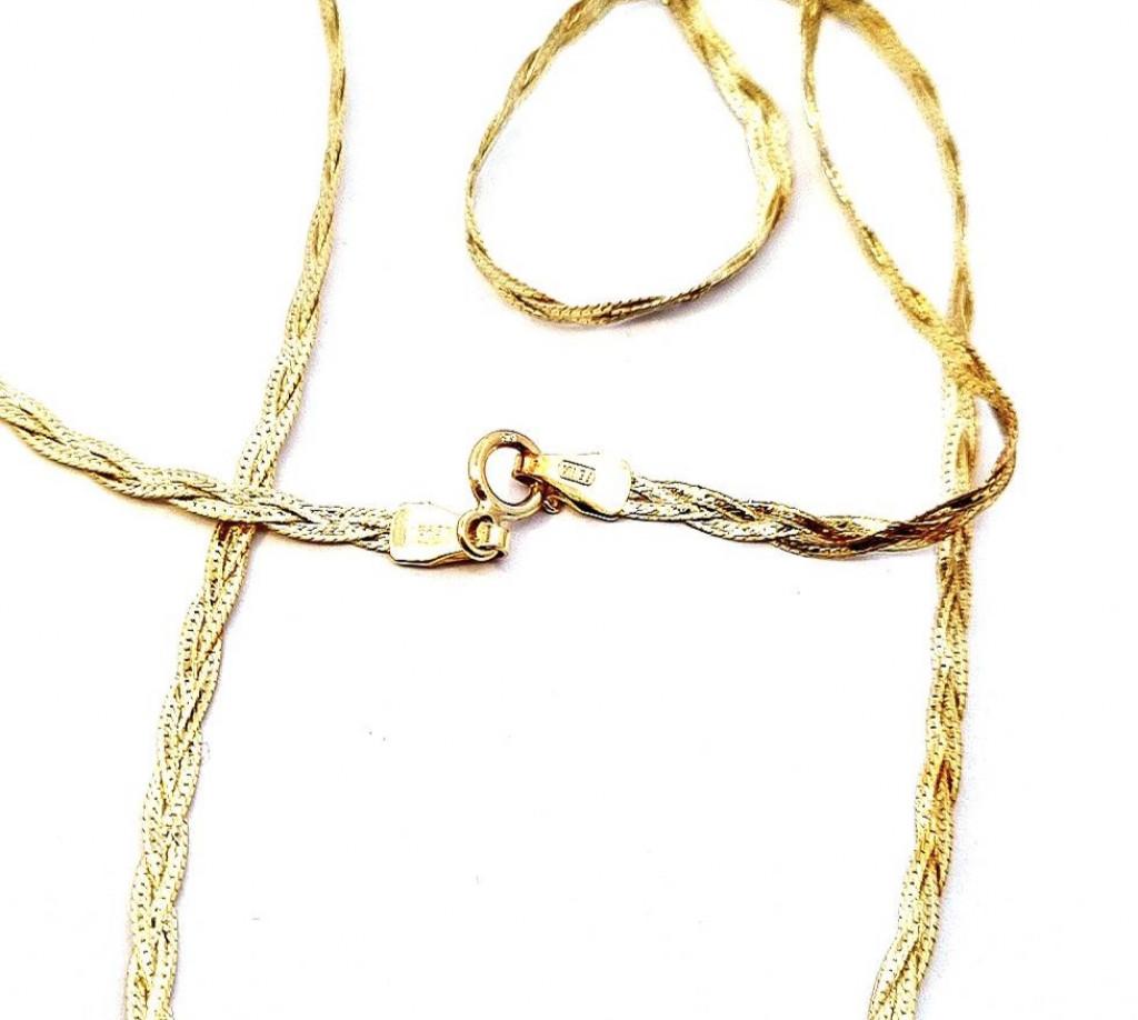 Zlatý řetízek ze žlutého zlata, váha 3,84 g, ryzost 585/1000, punc labuť. Délka 50 cm, šířka 2 mm.