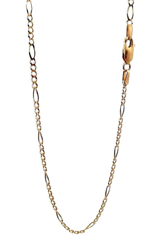 Zlatý řetízek o ryzosti 585/1000, punc labuť. Váha 4,43 g, délka 51 cm, v nejširším bodě 2,5 mm.