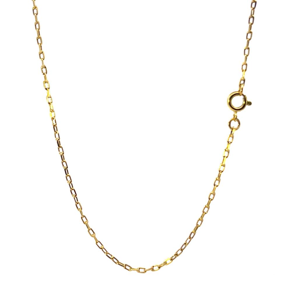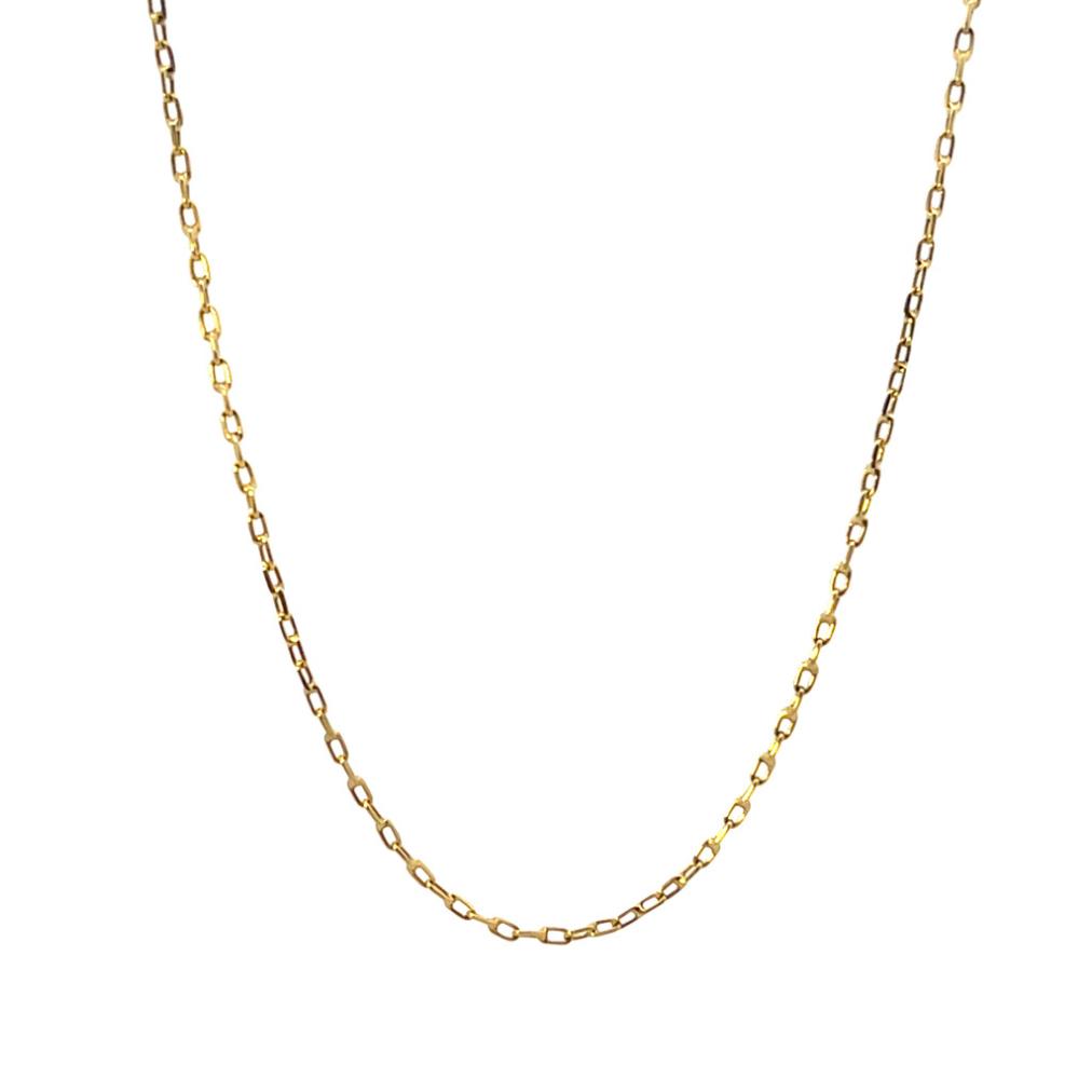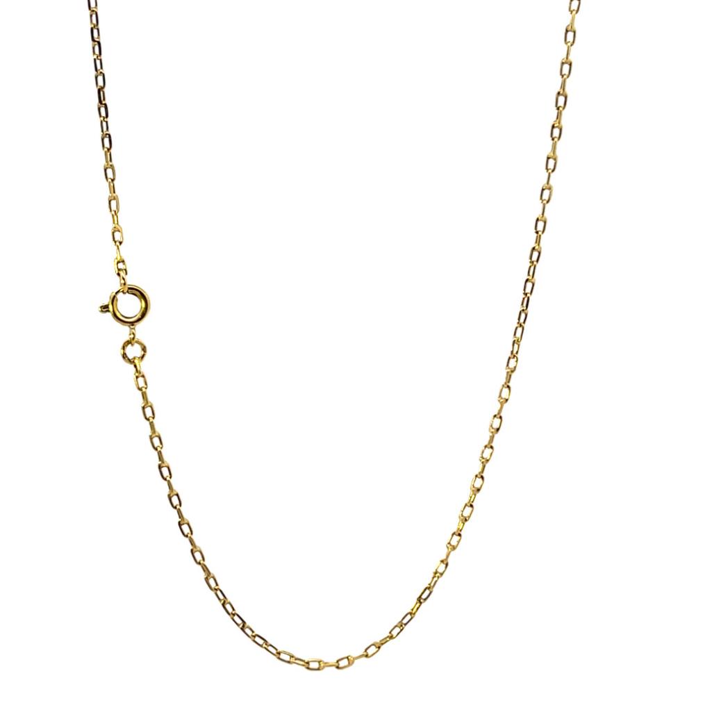 Zlatý řetízek o ryzosti 585/1000, punc čejka. Váha 4,53 g, délka 52,5 cm, v nejširším bodě 2 mm.