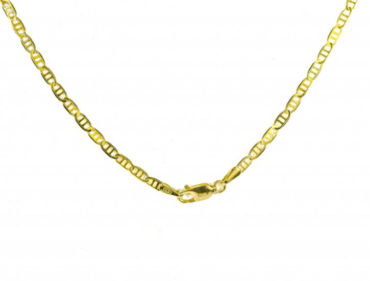 Zlatý řetízek o ryzosti 585/1000, punc labuť. Váha 5,02 g, délka 45,3 cm, v nejširším bodě 3 mm.