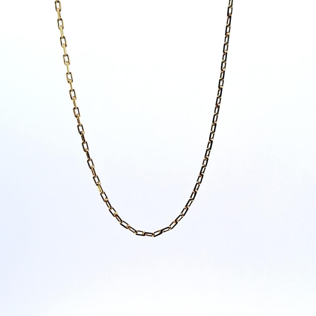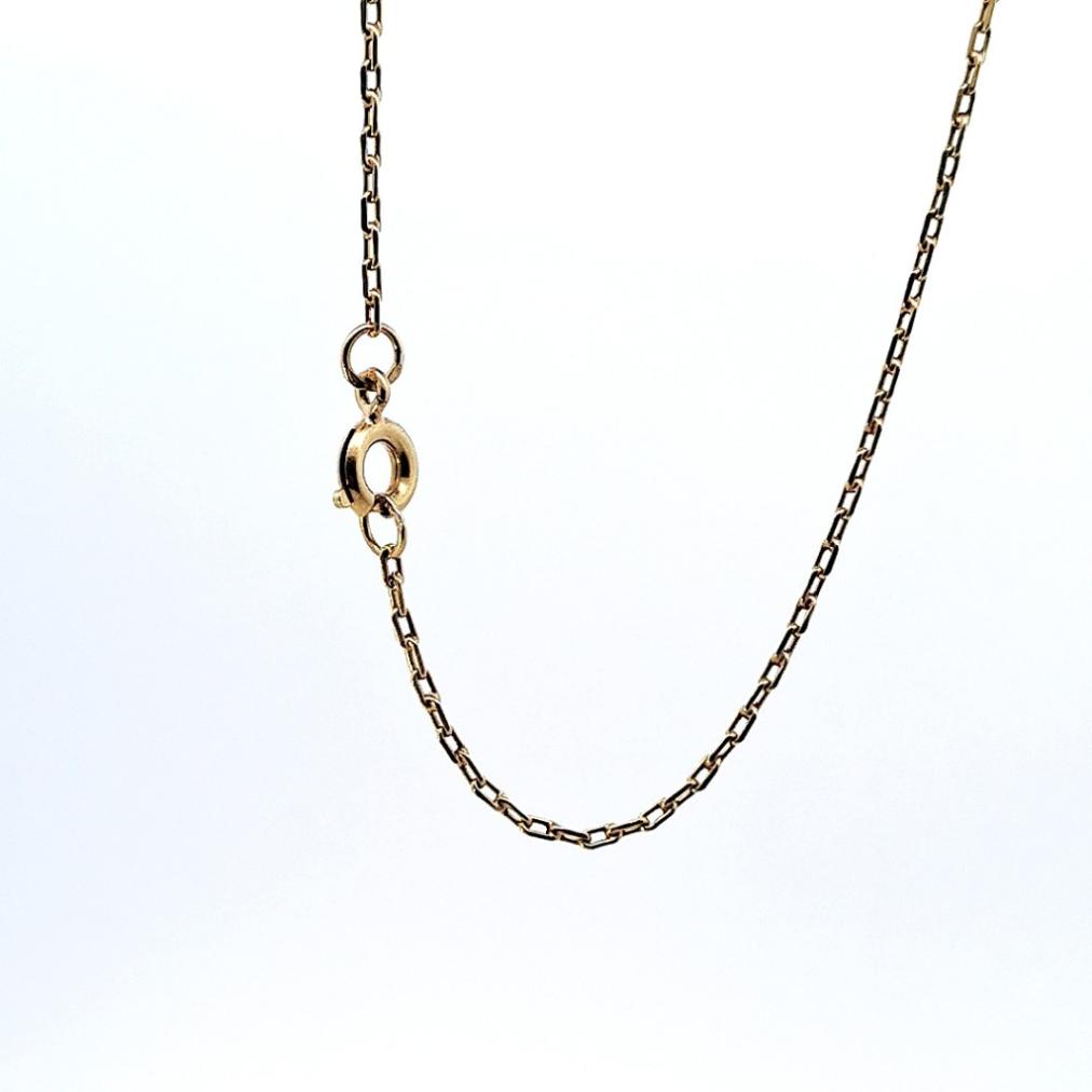 Zlatý řetízek o ryzosti 585/1000, punc labuť. Váha 5,23 g, délka 51,5 cm, šířka 1 mm.