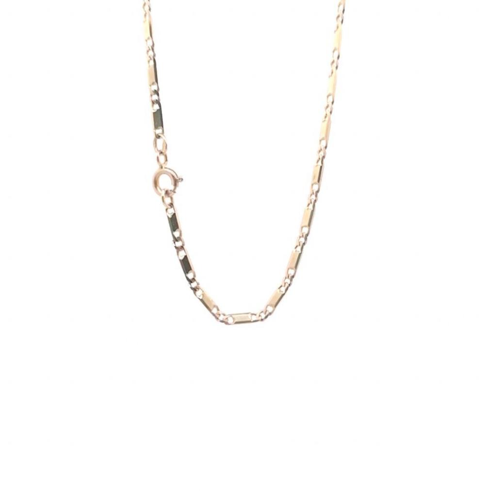 Zlatý řetízek o ryzosti 585/1000, punc labuť. Váha 5,68 g, délka 40,5 cm, šířka 2 mm.