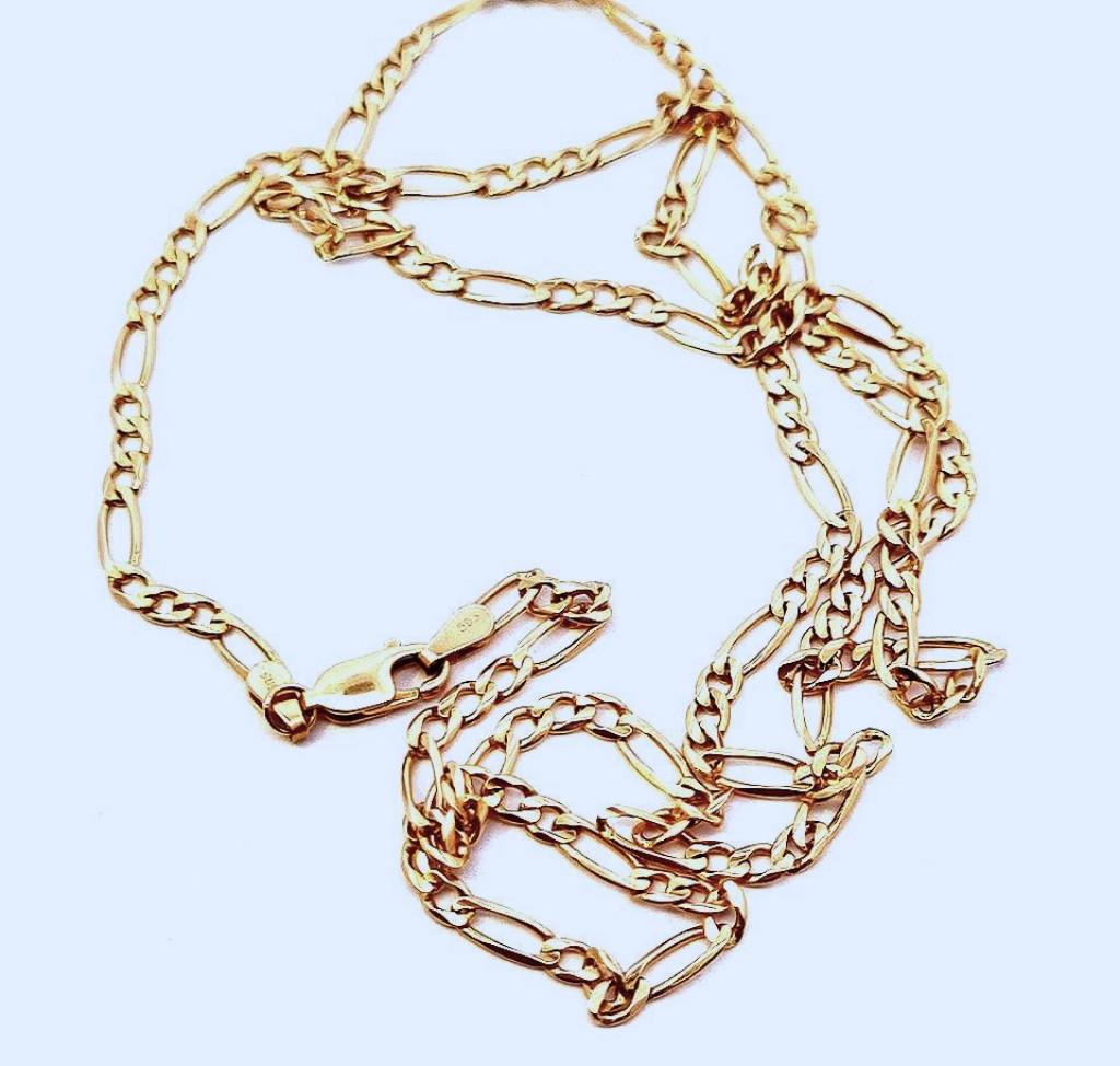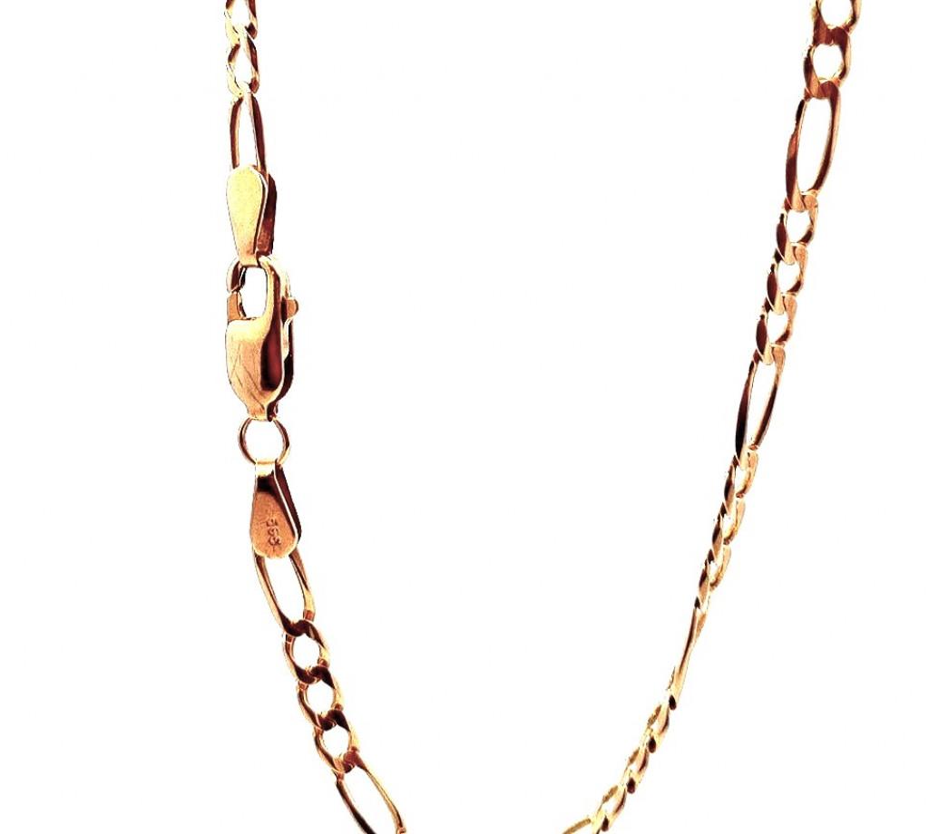 Zlatý řetízek o ryzosti 585/1000, punc labuť. Váha 7,95 g, délka 60,5 cm, šířka 3 mm.