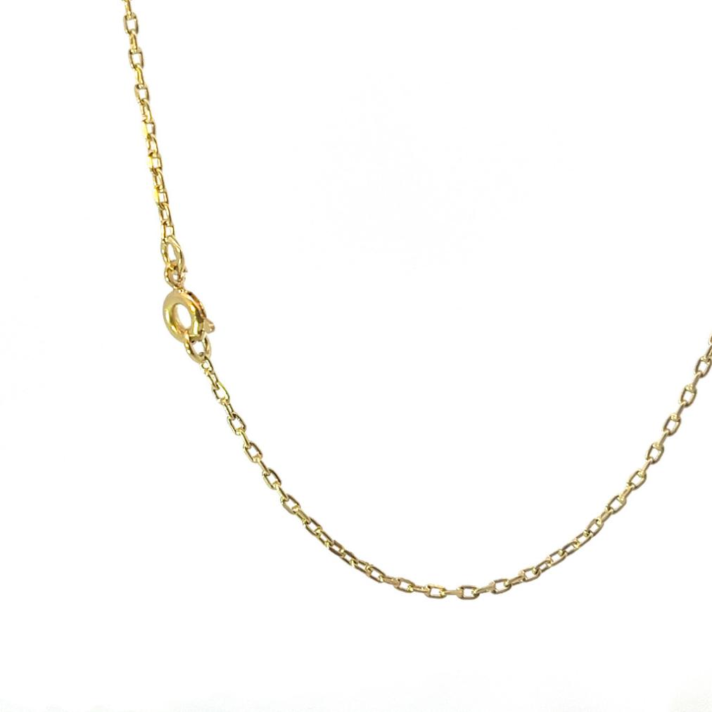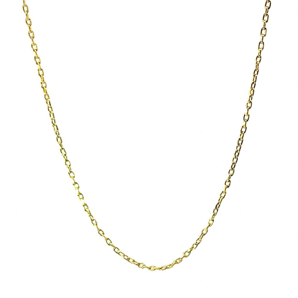 Zlatý řetízek s pilovanými očky. Zlato o ryzosti 585/1000 s puncem labuť. Váha 3,46 g, délka 46 cm, šířka oček 1,5 mm.