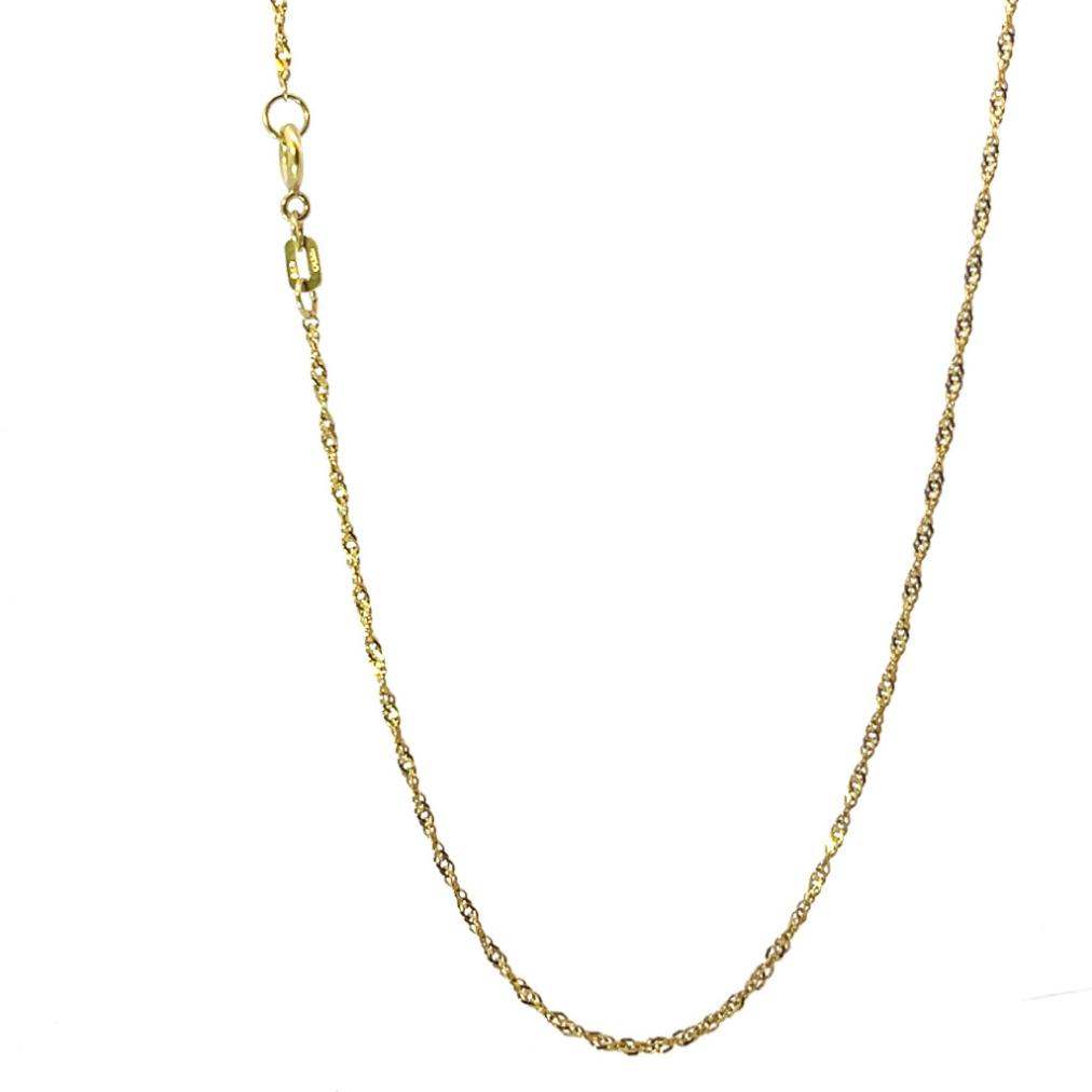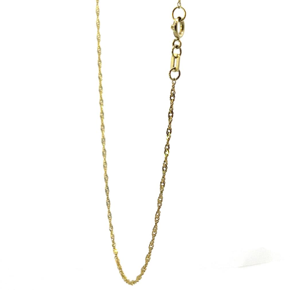 Elegantní točitý řetízek ze zlata o ryzosti 585/1000 s puncem labuť. Váha 2,43 g, délka 48 cm, šířka oček 1,5 mm.