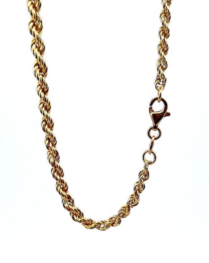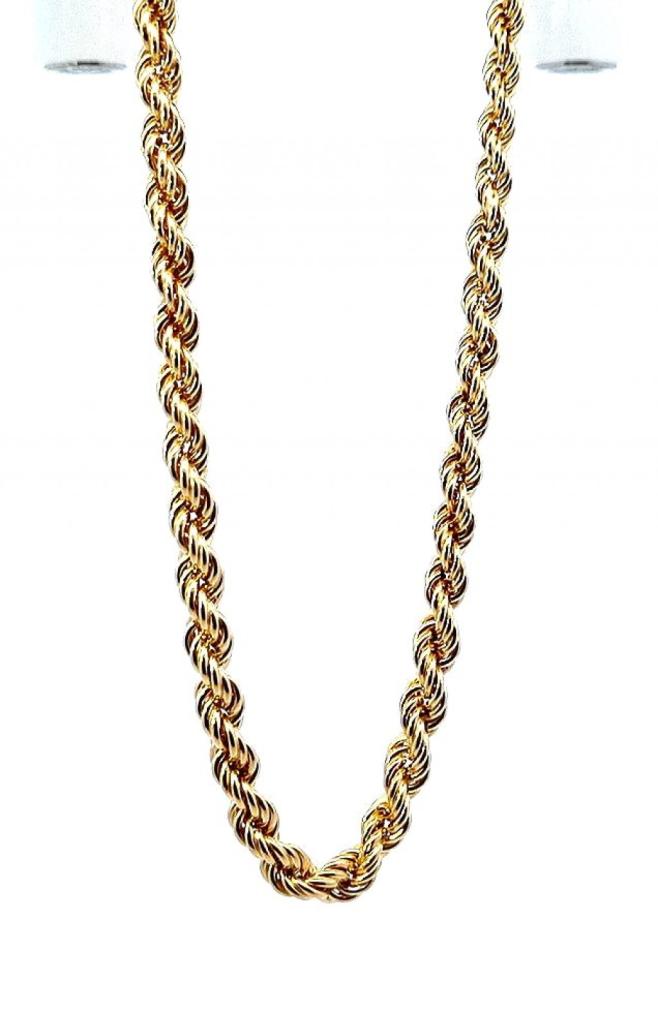 Elegantní řetízek ze žlutého zlata o ryzosti 585/1000 s puncem labutě. Vzor řetízku připomíná točící se lano, jehož smyčky se od zapínání směrem ke středu řetízku zvětšují. Délka řetízku je 42 cm, šířka v nejširším bodě 5 mm a váha 8,54 g.