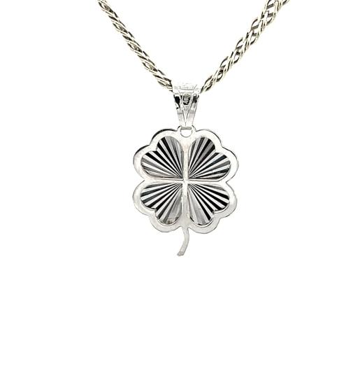 Přívěs z bílého zlata o ryzosti 585/1000, punc labuť. Váha 0,69 g, výška včetně očka 20 mm, v nejširším bodě 12 mm. Řetízek není součástí nabídky.