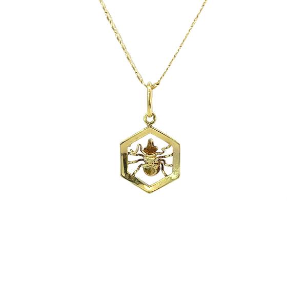 Starožitný zlatý přívěs s almandinem, první republika, pavouček