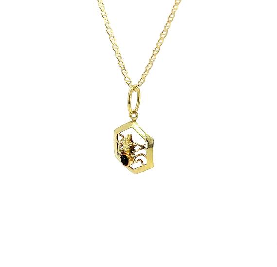 Zlatý přívěs o ryzosti 585/1000, punc lvíček. Váha 0,87 g, výška 22 mm, v nejširším bodě 12 mm.