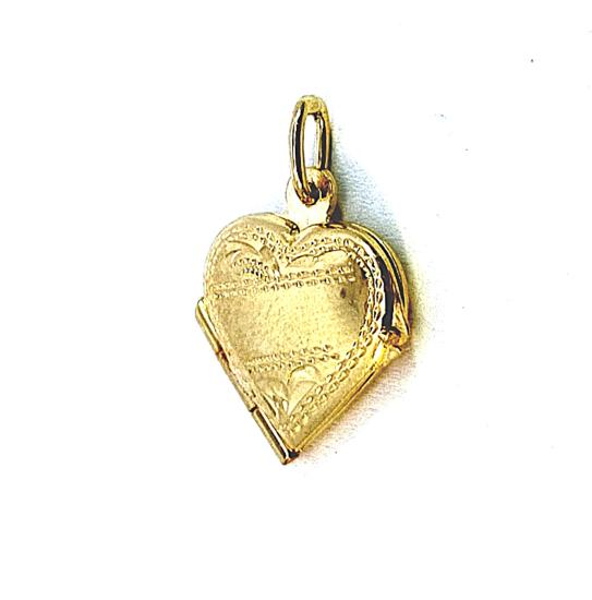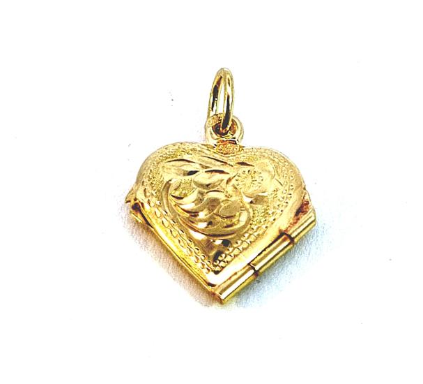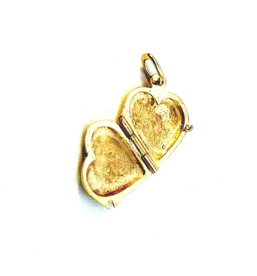 Zlatý medailonek o ryzosti 585/1000, punc čejka. Váha 1,25 g, výška včetně očka 19 mm, v nejširším bodě 13 mm.